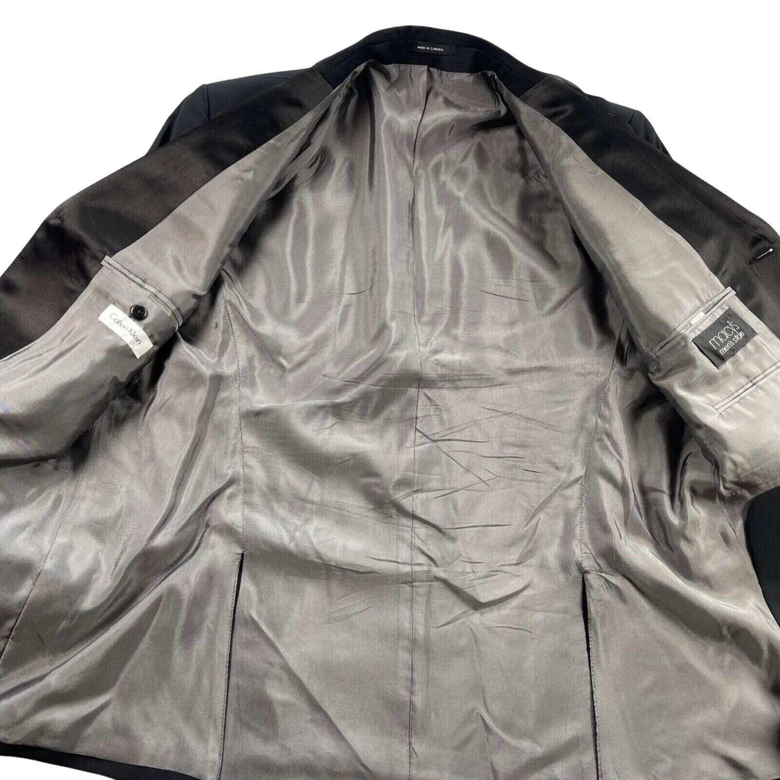 Calvin Klein Tuxedo Jacket Mens 44R 100 Wool Black Satin Trim Three Button