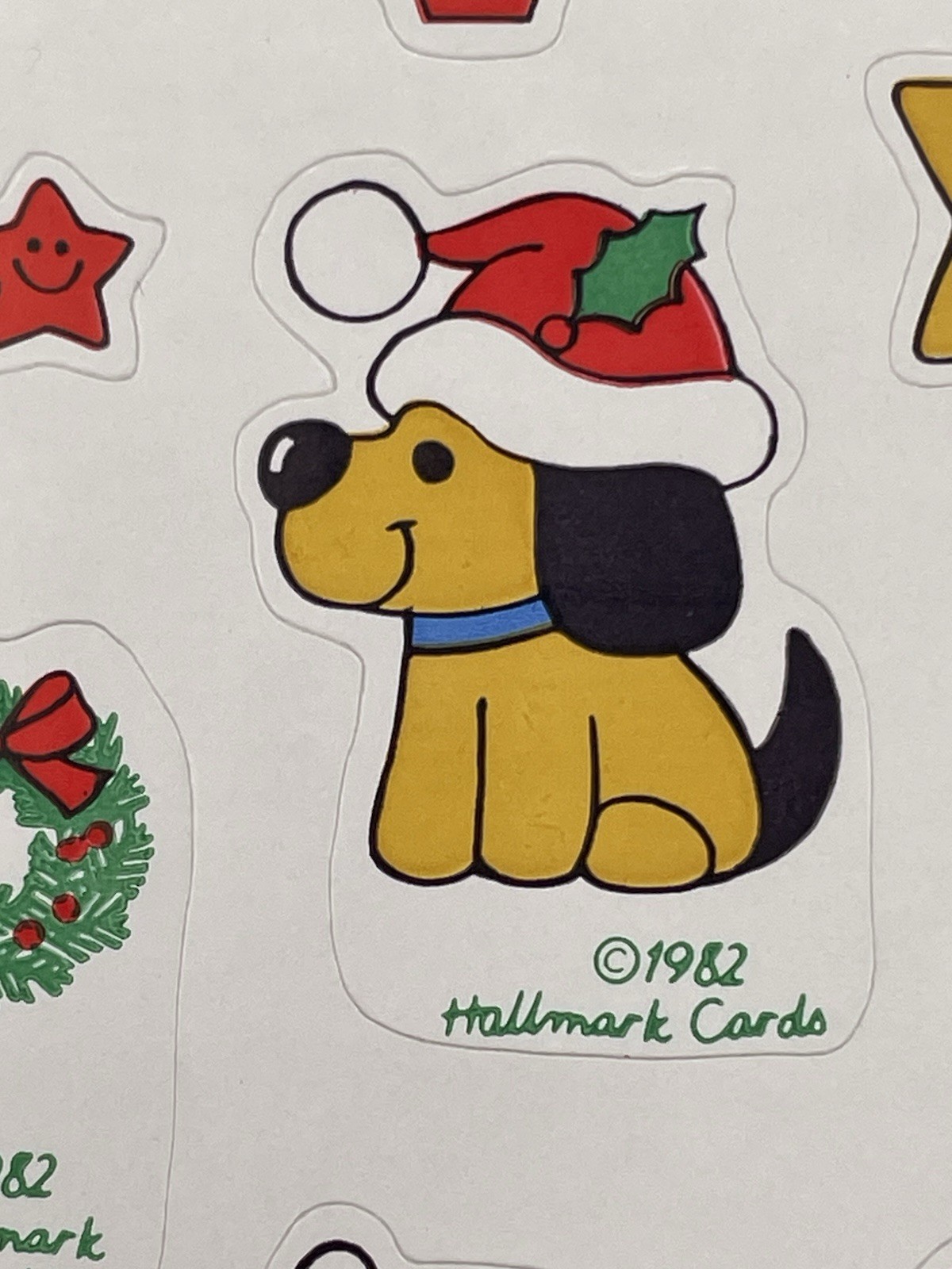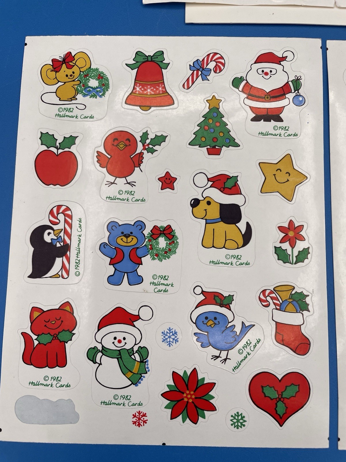 как выглядит Christmas Stickers Puffy Padded Vinyl and Vintage Hallmark Reindeer Cat Wreath фото