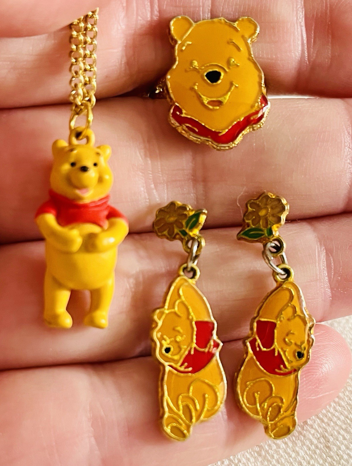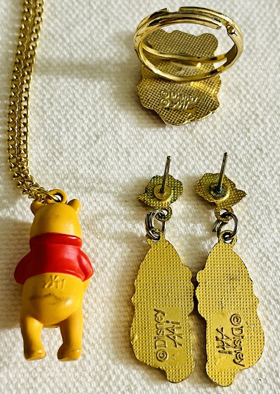 Lot 3 Pieces Vintage Collectable Winnie-the-Pooh Jewelry Earrings Ring Necklace