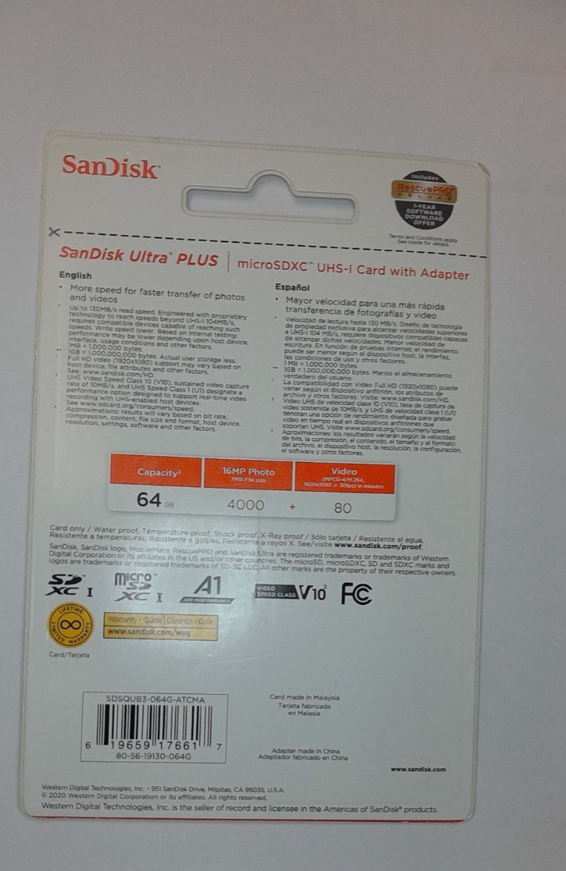 SanDisk Ultra Plus MicroSDXC UHS-I Card w/ Adapter - 64GB