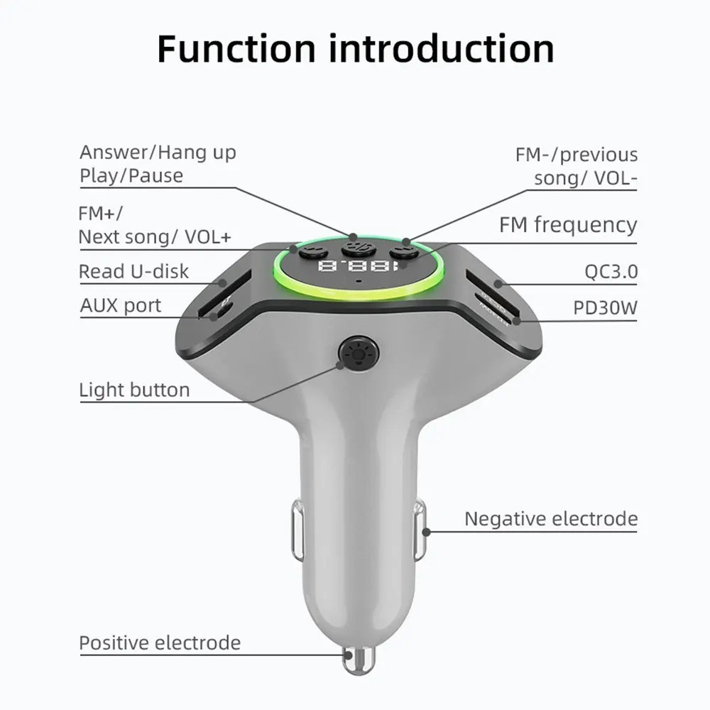 как выглядит PD30W QC3.0 Bluetooth 5.3 Car MP3 Player FM Transmitter Wireless Handsfree фото