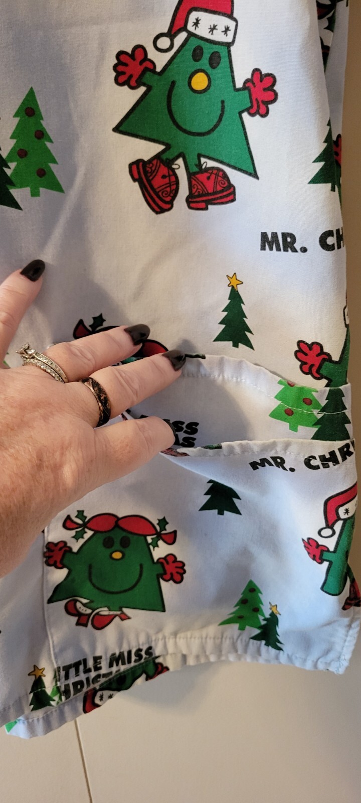Scrub Top Shirt Large Womens Short Sleeve Mr Little Miss Christmas Holiday Tree