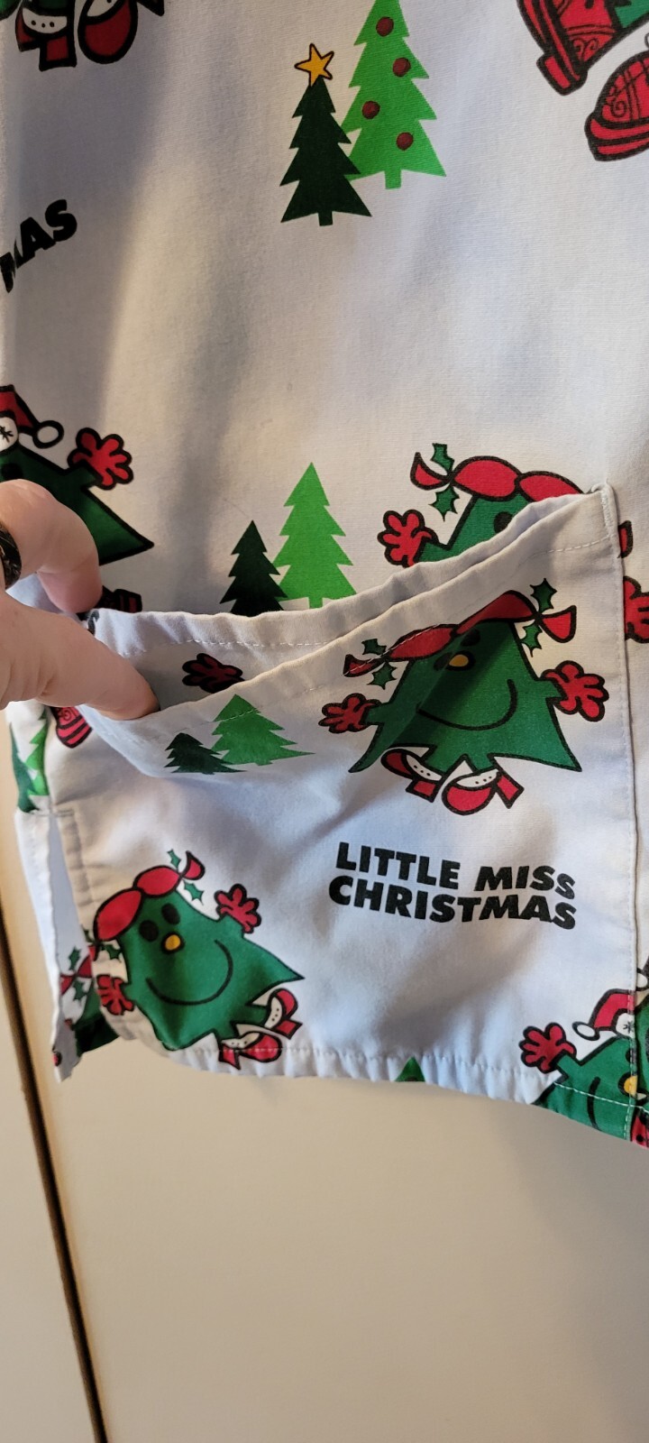 как выглядит Scrub Top Shirt Large Womens Short Sleeve Mr Little Miss Christmas Holiday Tree фото