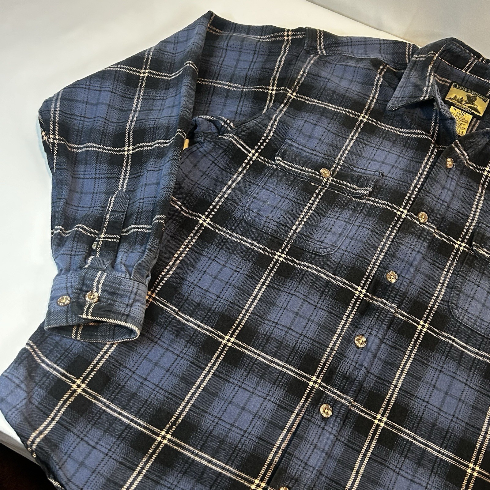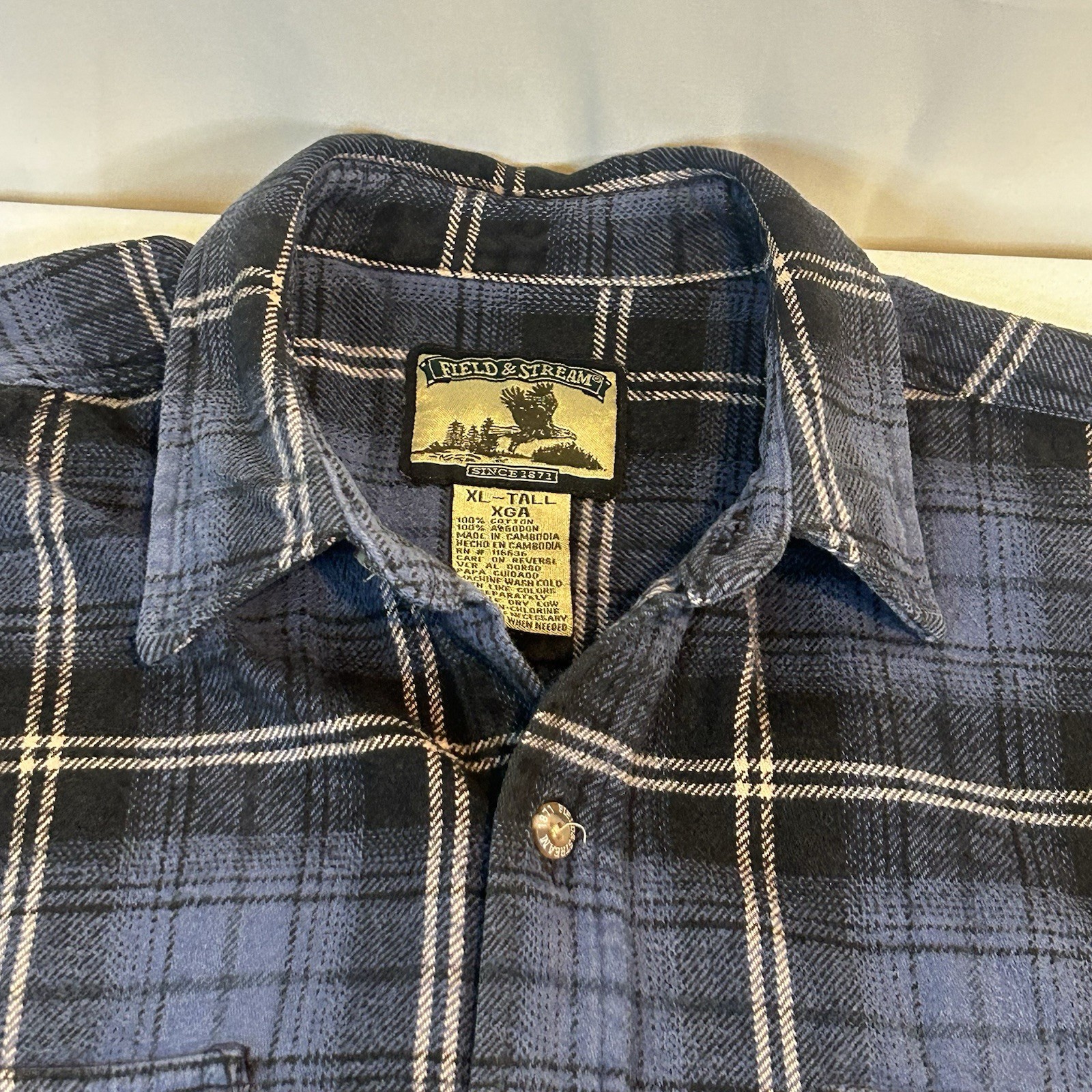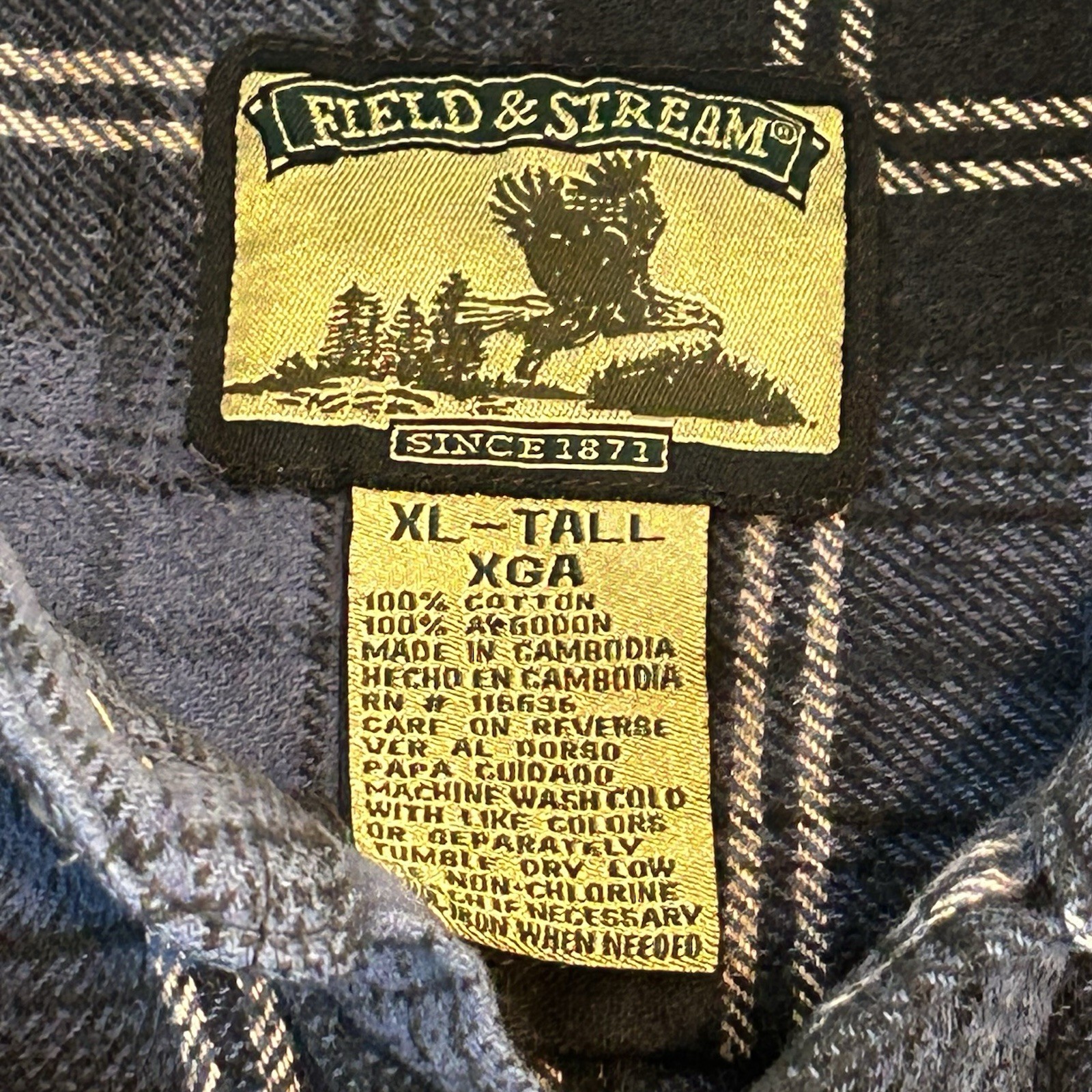 Field Stream Men's XL Blue Heavy Flannel Plaid Shirt Cotton Vintage