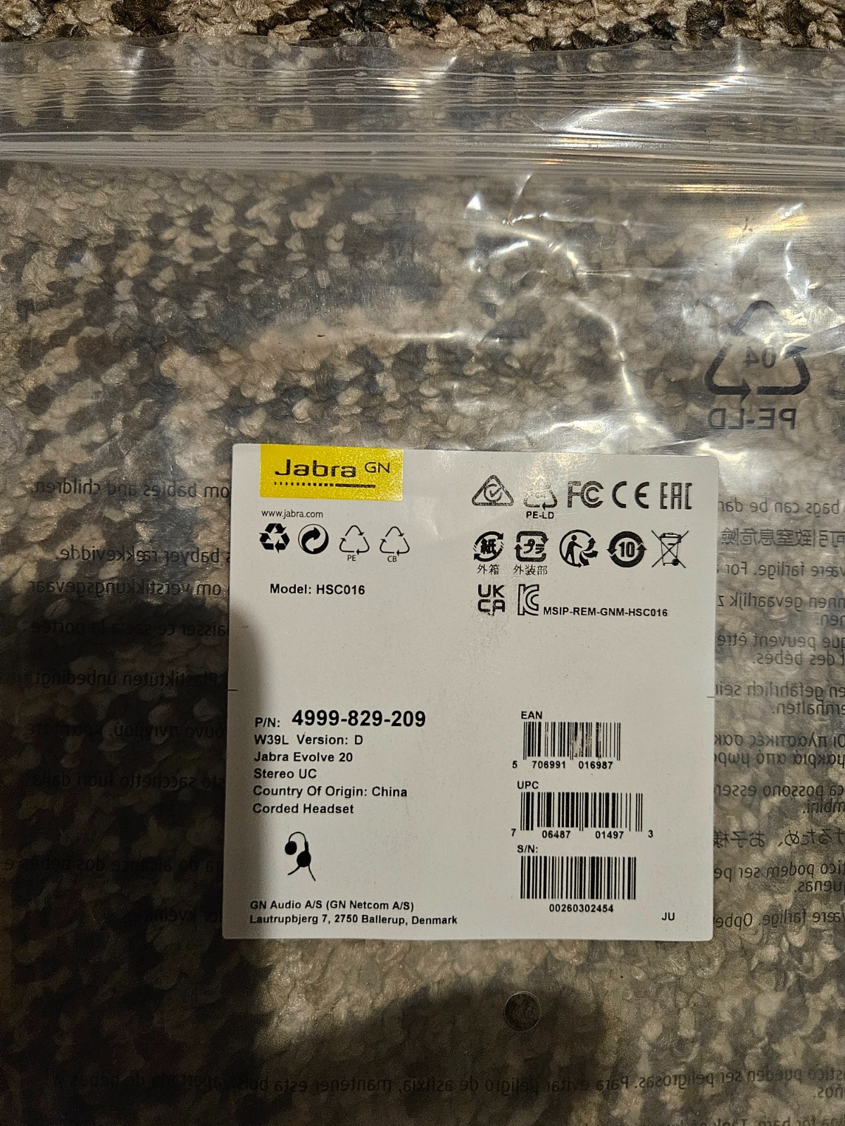 Jabra Evolve 20 UC Stereo Ear-Pad Headset 4999-829-209