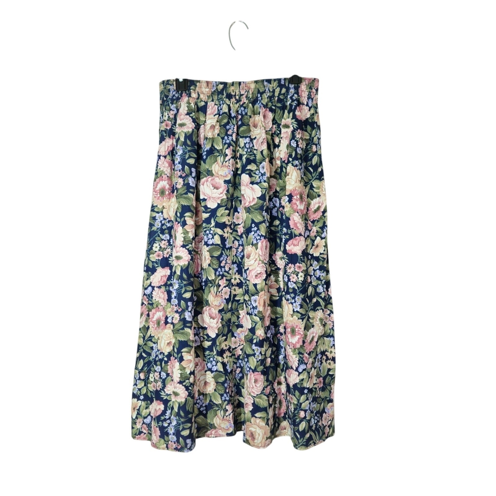 VTG 90s Fritzi Floral Print Pleated High Waist Midi Skirt Sz Large Elastic Waist