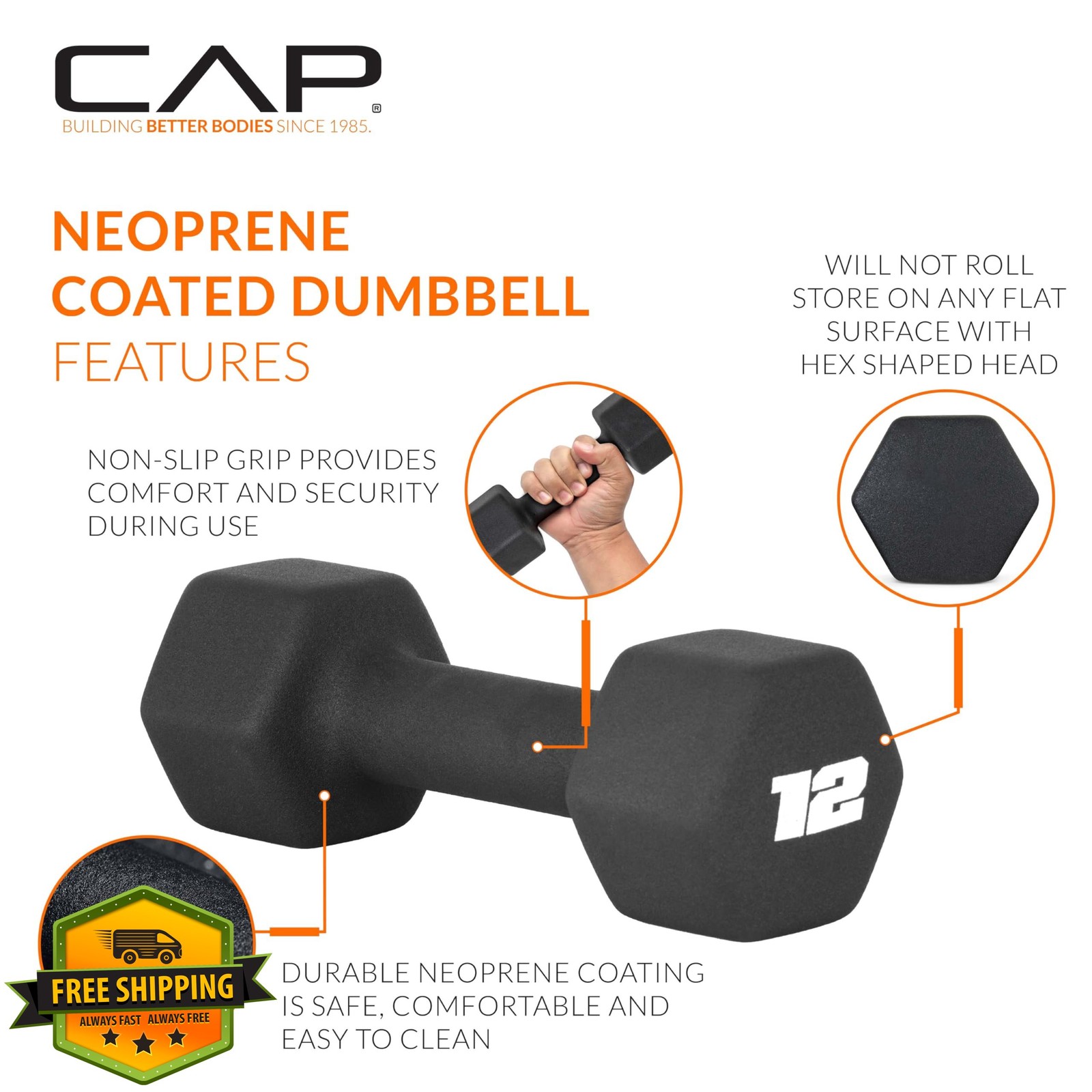 CAP Barbell 12 LB Neoprene Dumbbell Hand Weights Pair Black