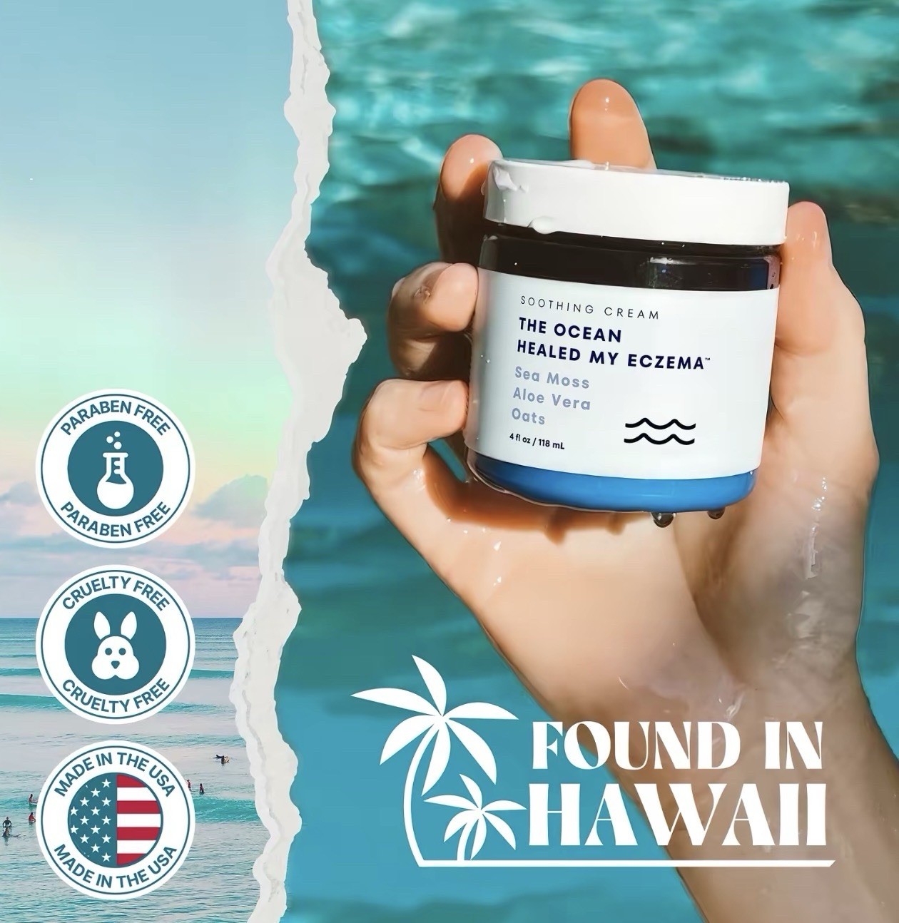 Long Title: The Ocean Healed My Eczema by HBTO, 4 oz Soothing Cream