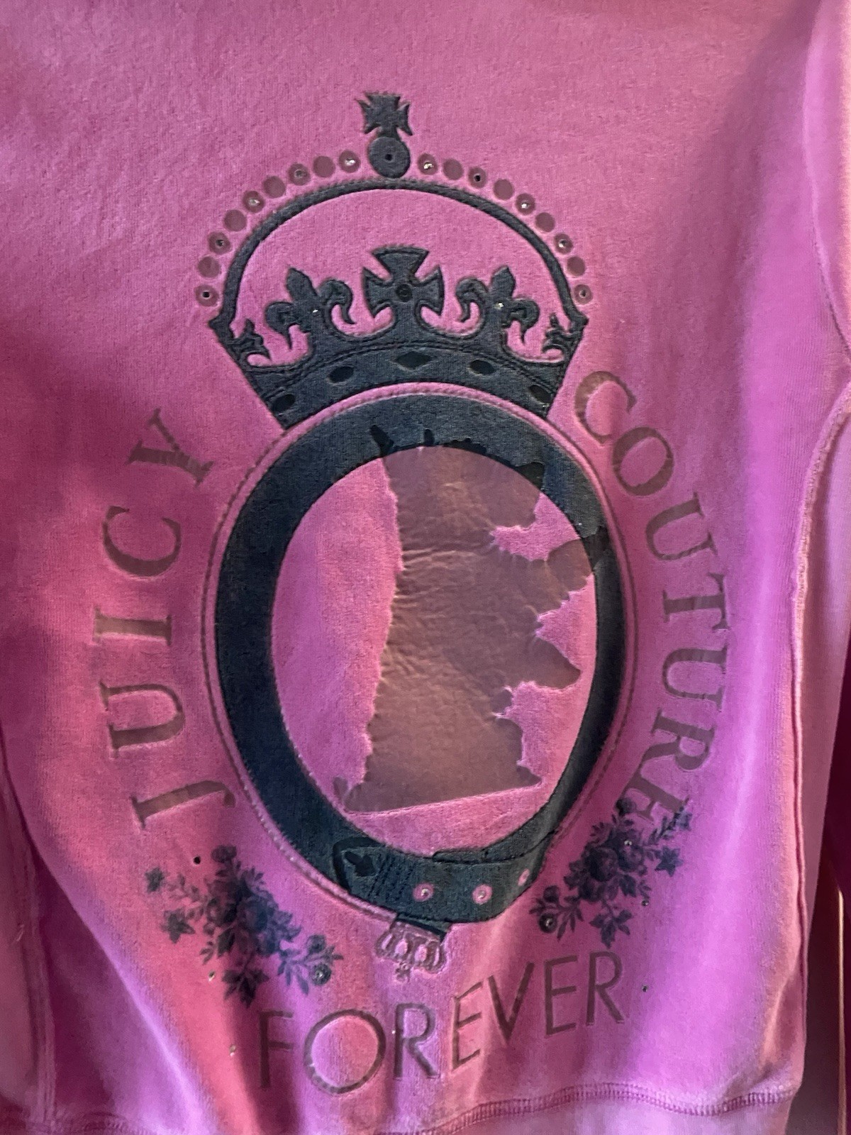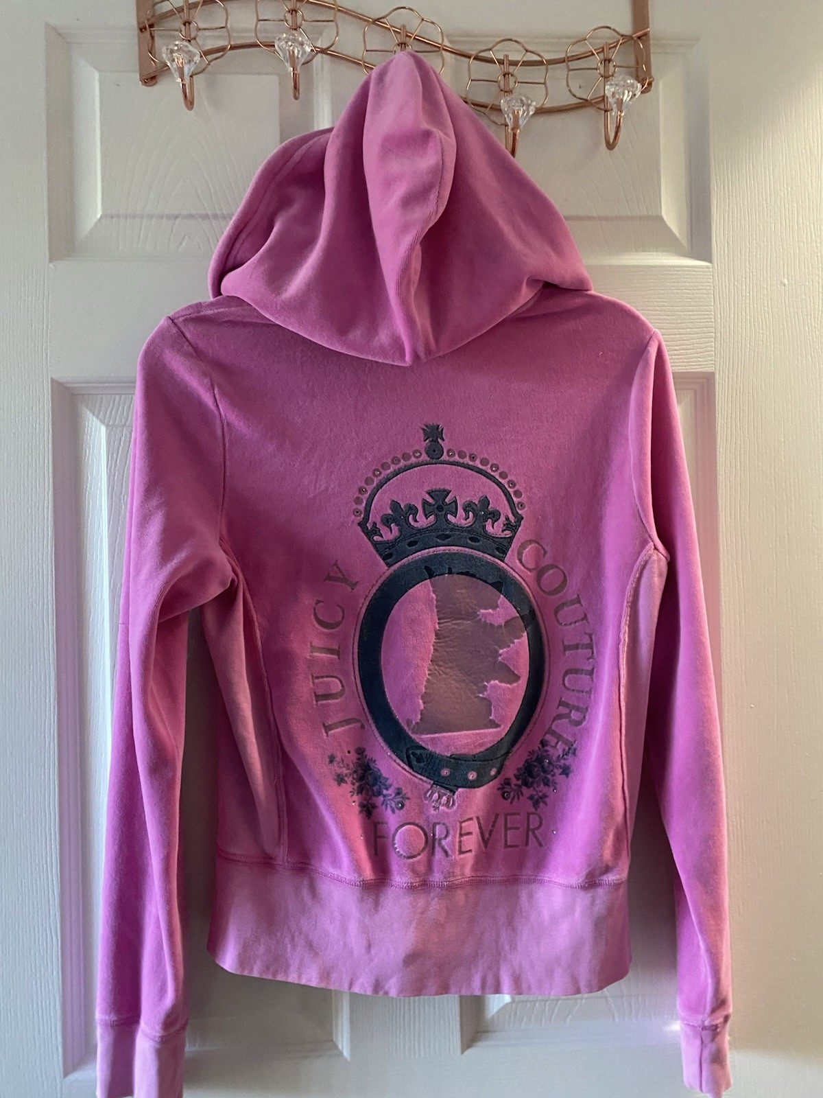 как выглядит pink Juicy Couture Velour Y2k Sweater With Bling Back hit Size S/M фото
