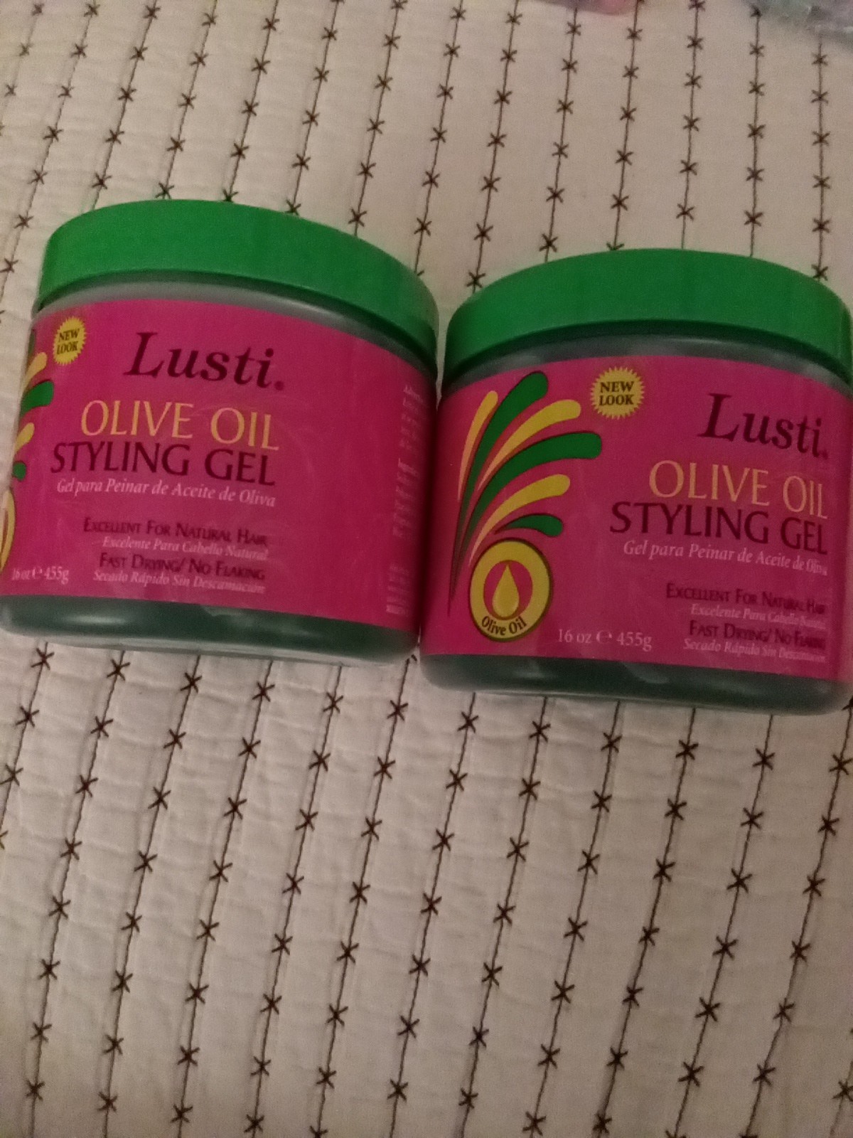 LOT 2 LUSTI OLIVE OIL STYLING GEL FAST DRYING NO FLAKING 16 oz MADE IN USA