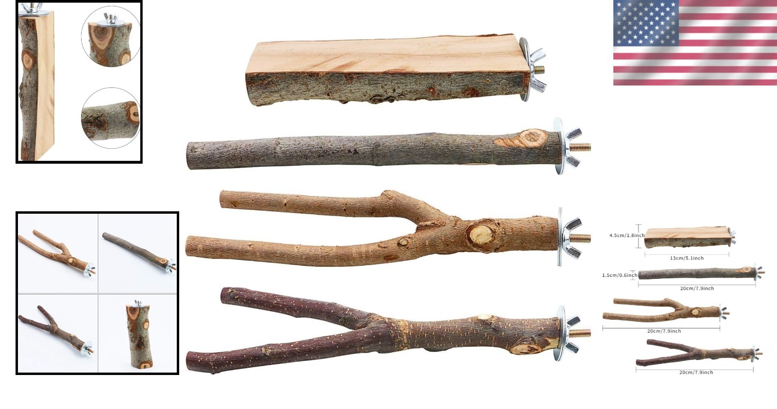 Deluxe 4-Pack Wooden Perches with Stable Platform - Easy Installation for Birds