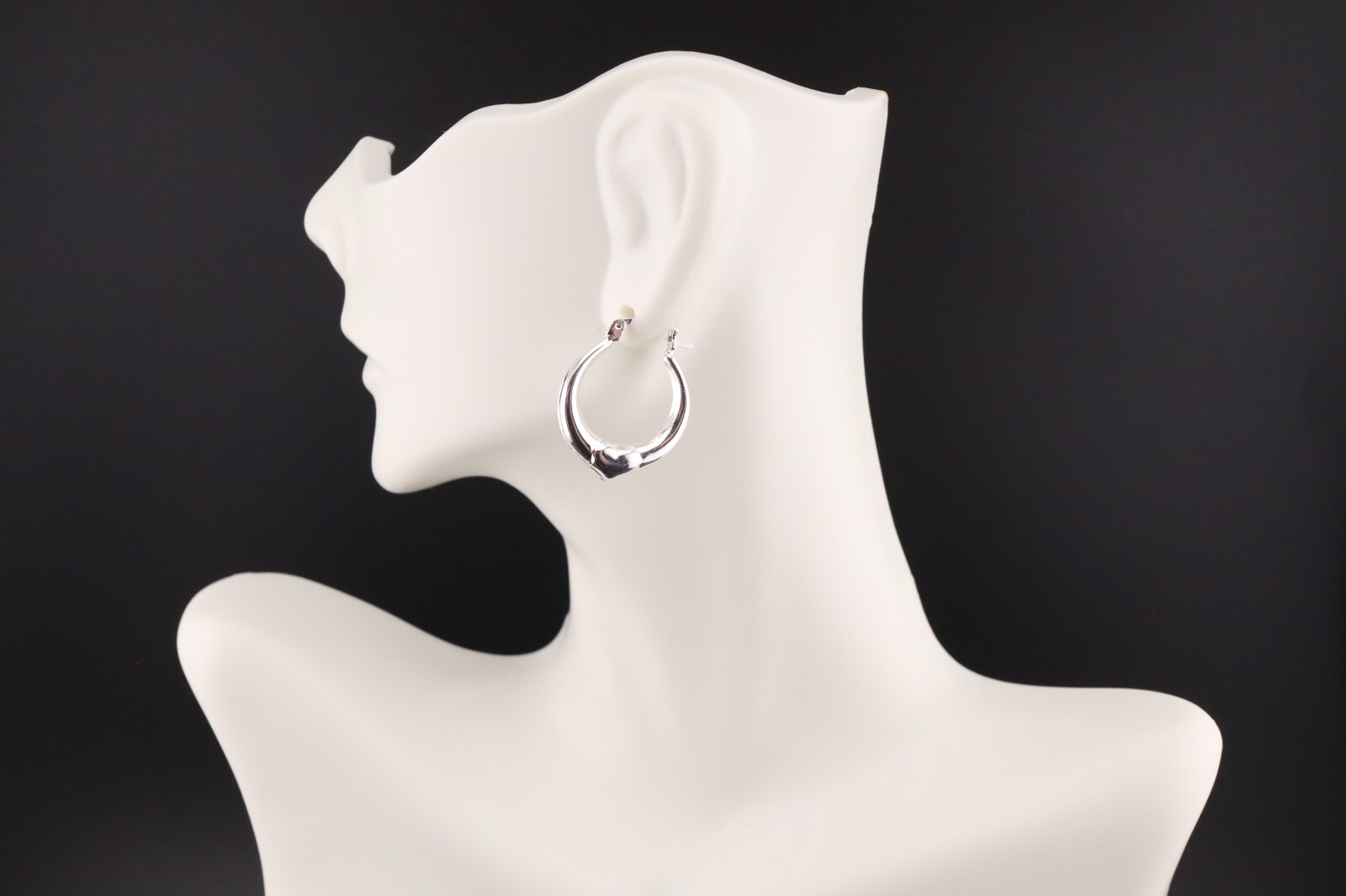 как выглядит Womens Sterling Silver Heart Hoop Earrings Polished Lightweight Jewelry фото