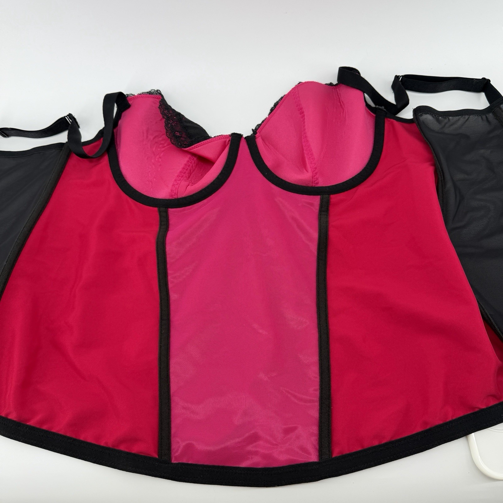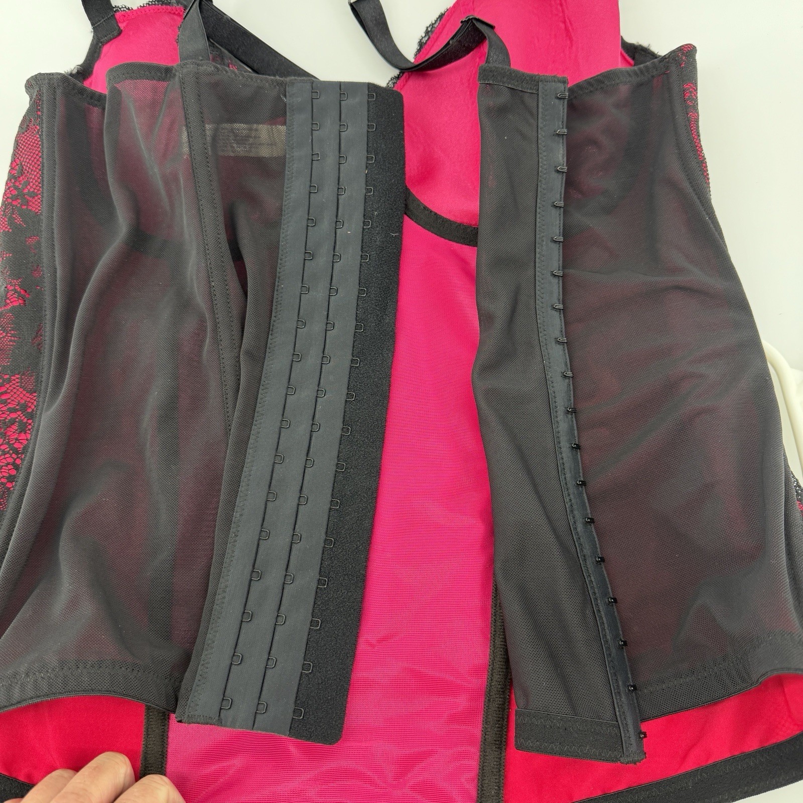 Cacique UNDERWIRE Lined Pink Black Lace Bustier BODICE Corset Bra Top 18-20 Goth