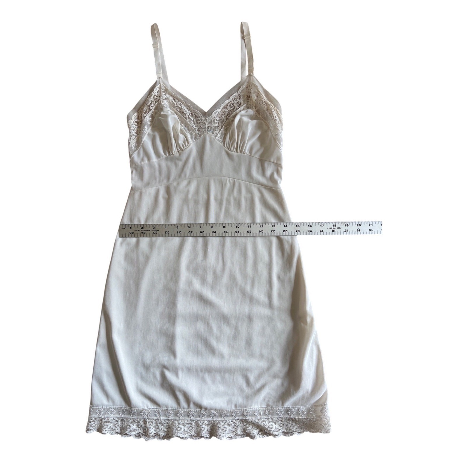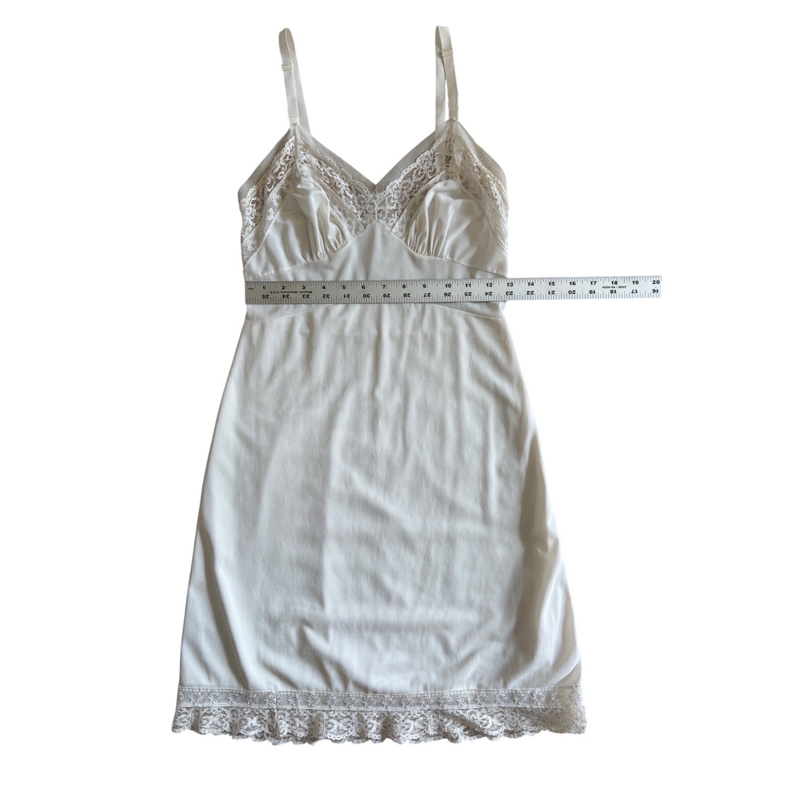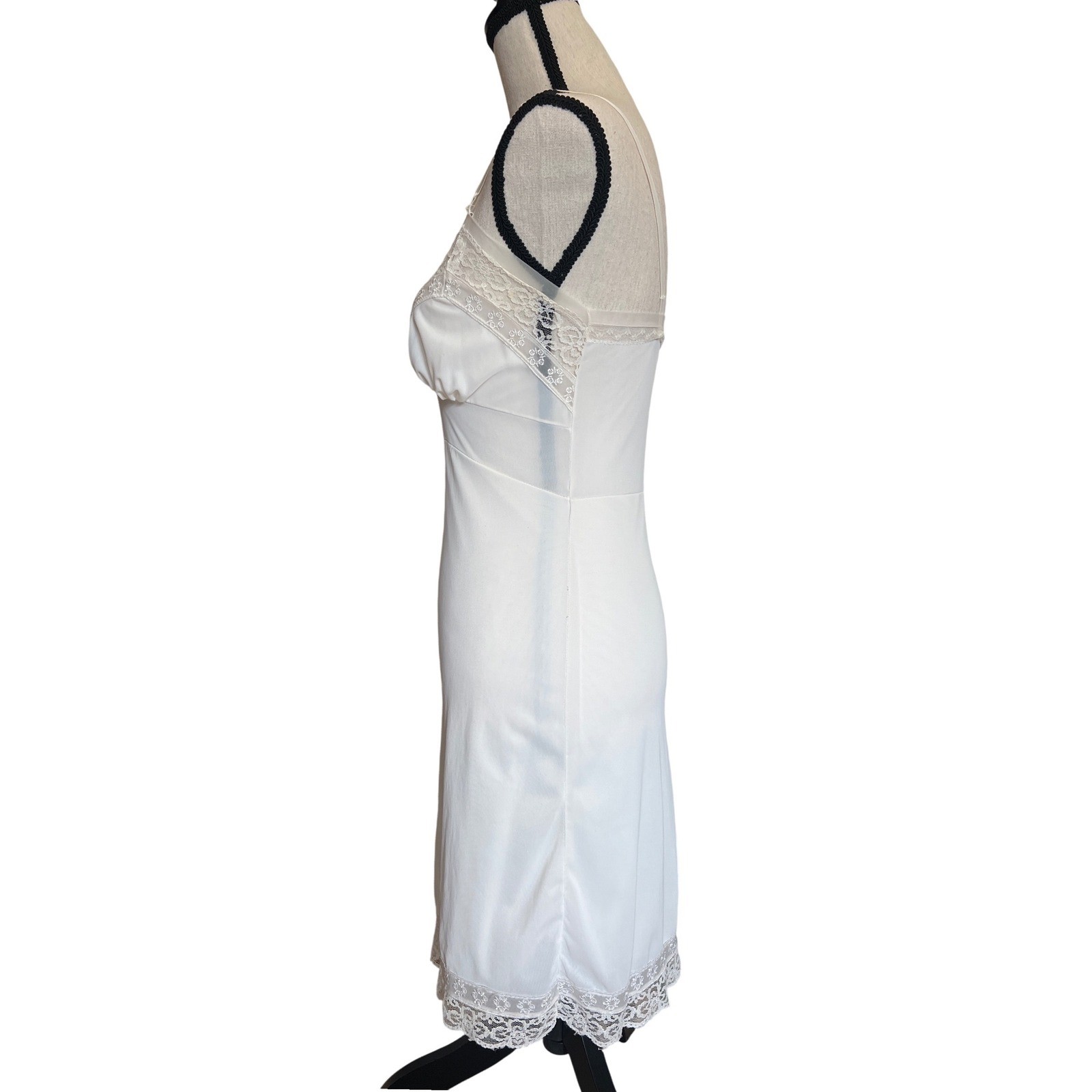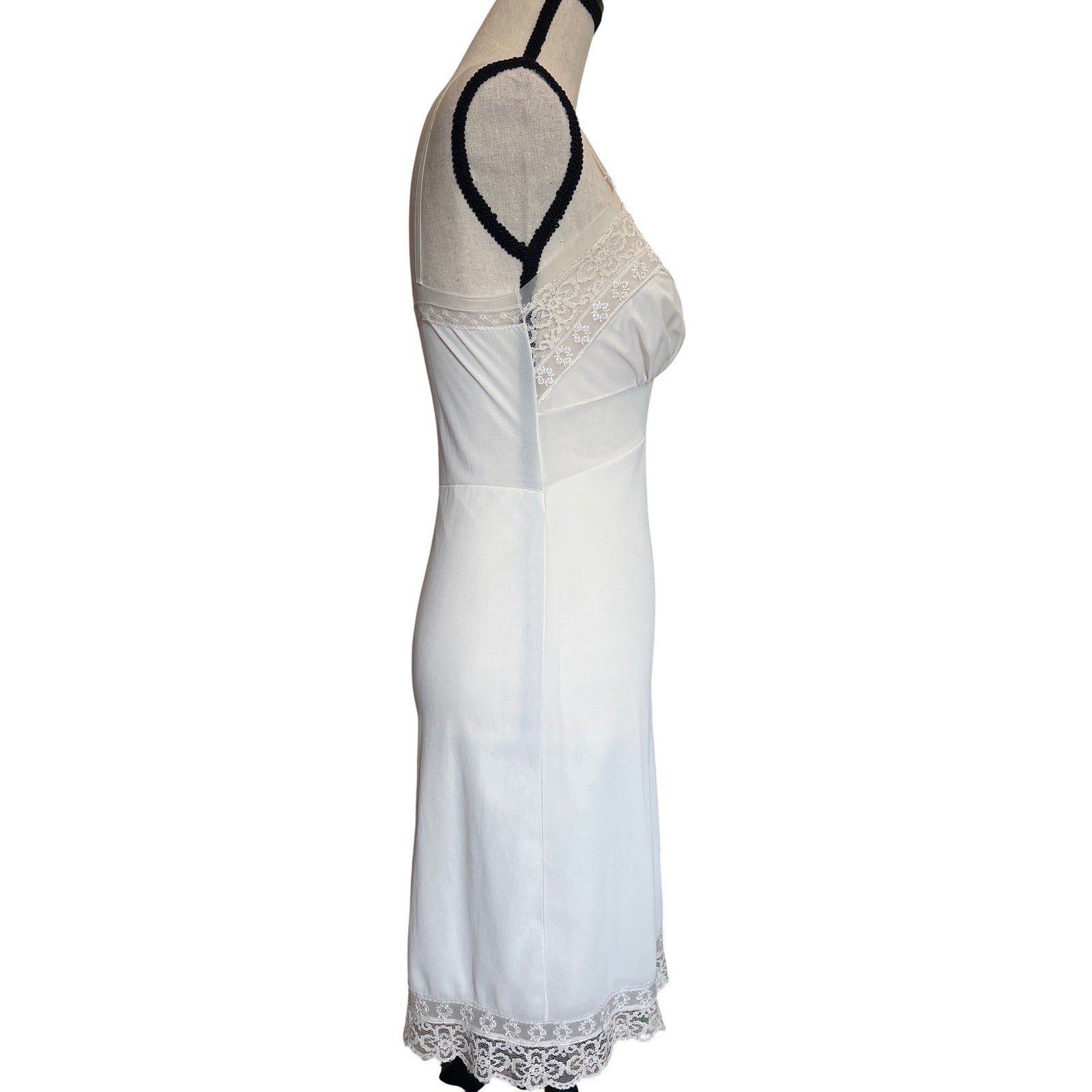 как выглядит Vintage White Lace Trim Full Slip Adjustable Straps Mid-Century Lingerie Dress фото