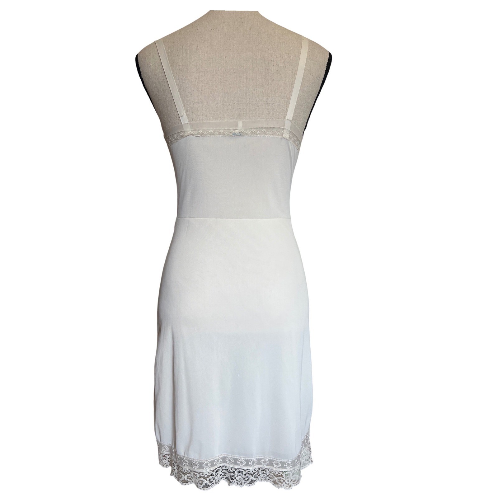 Vintage White Lace Trim Full Slip Adjustable Straps Mid-Century Lingerie Dress