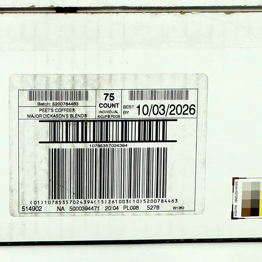 Peet'S Coffee, Dark Roast, K-Cup Pods, Major Dickason's Blend, 75 Ct, BB: 10/26