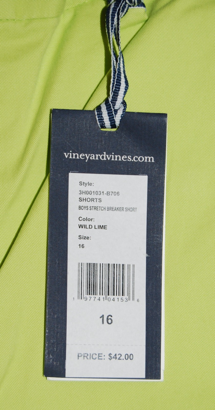 NWT Vineyard Vines Boy's Wild Lime Green Flat Front Stretch Breaker Shorts sz 16