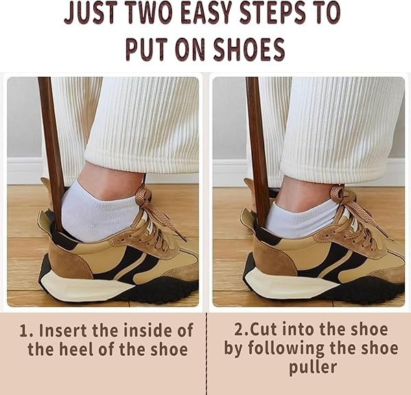 Long Handle Shoe Horn 12.5 Wooden Shoe Helper for Seniors Men Women