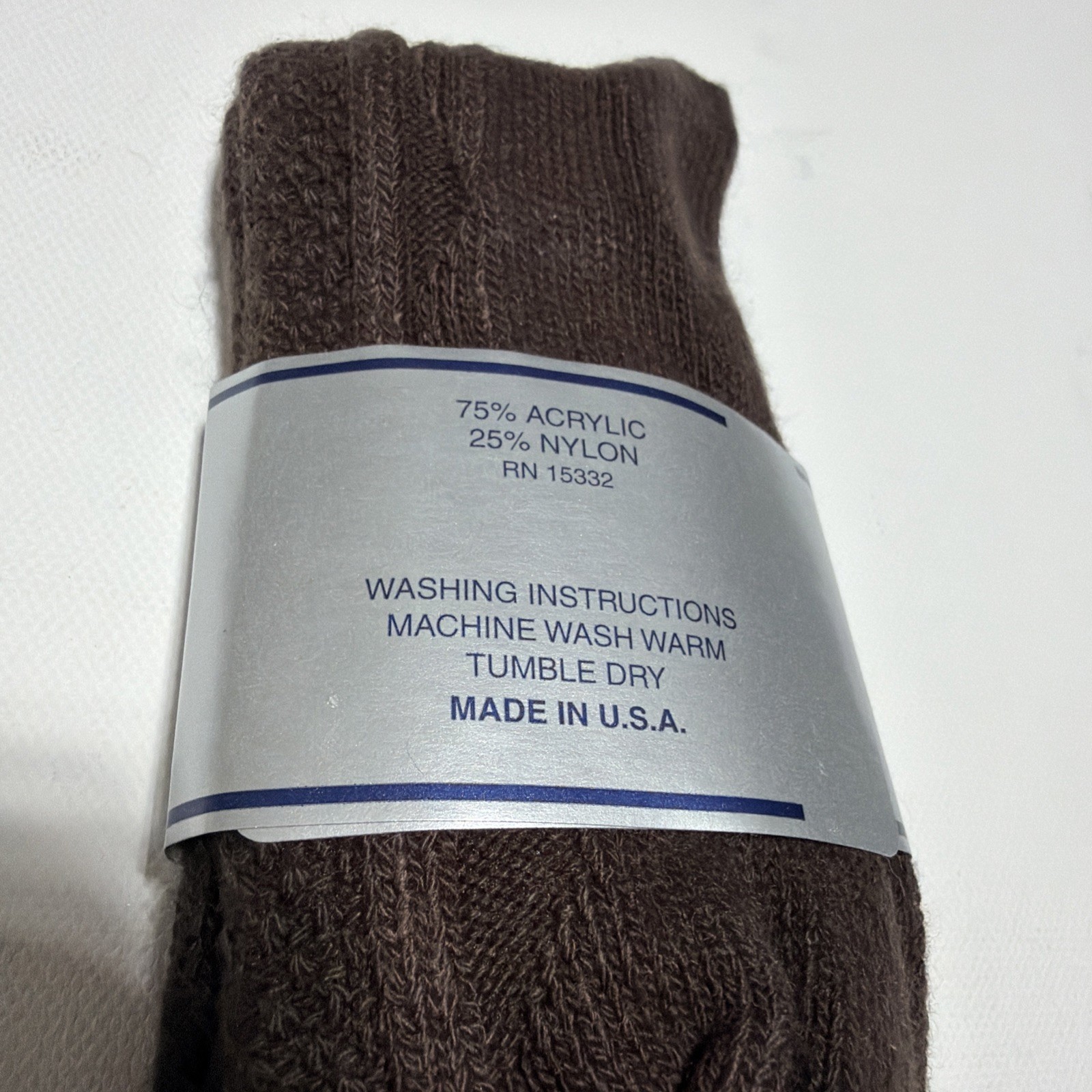VTG Socks 80s Cable Knit Brown 21 9-11 USA Stocking School Misses Knee Highs