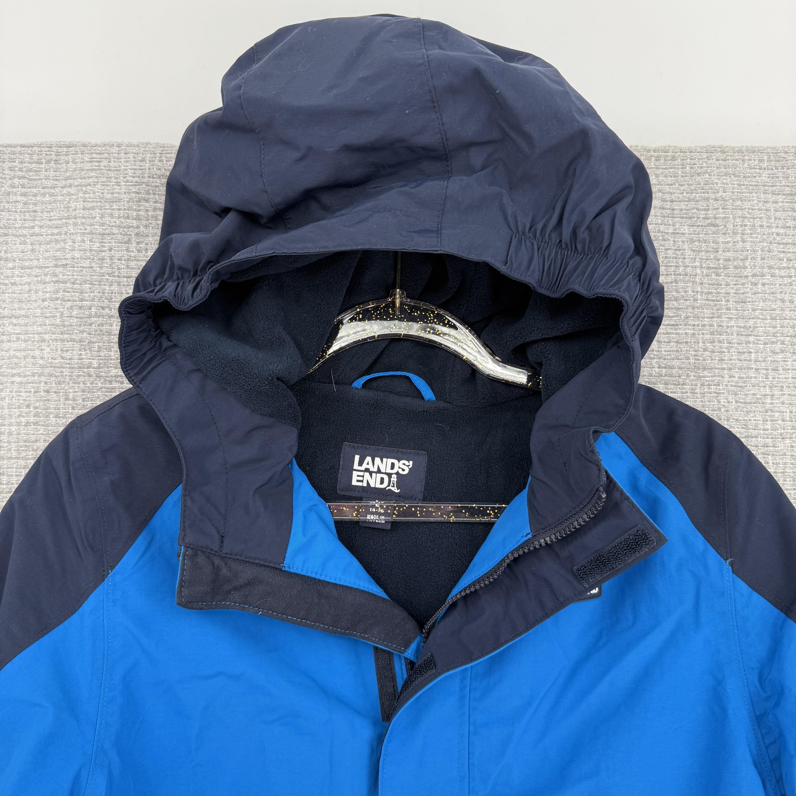 Lands' End Squall Parka Jacket Kids 14-16 Blue Hooded Waterproof Insulated