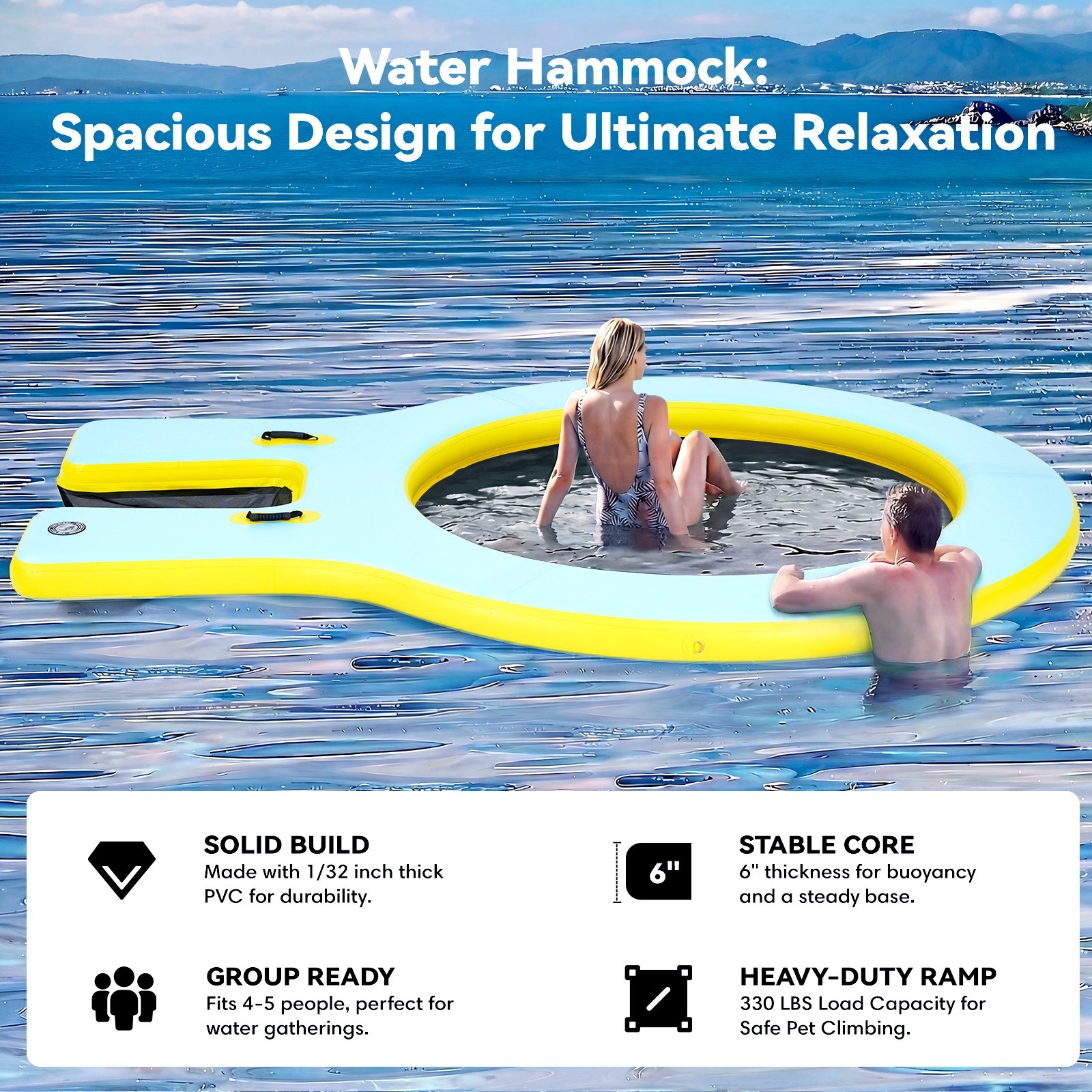 8' Round Inflatable Dock Ring w/Dog Ramp for Lake Pool Boat Floats