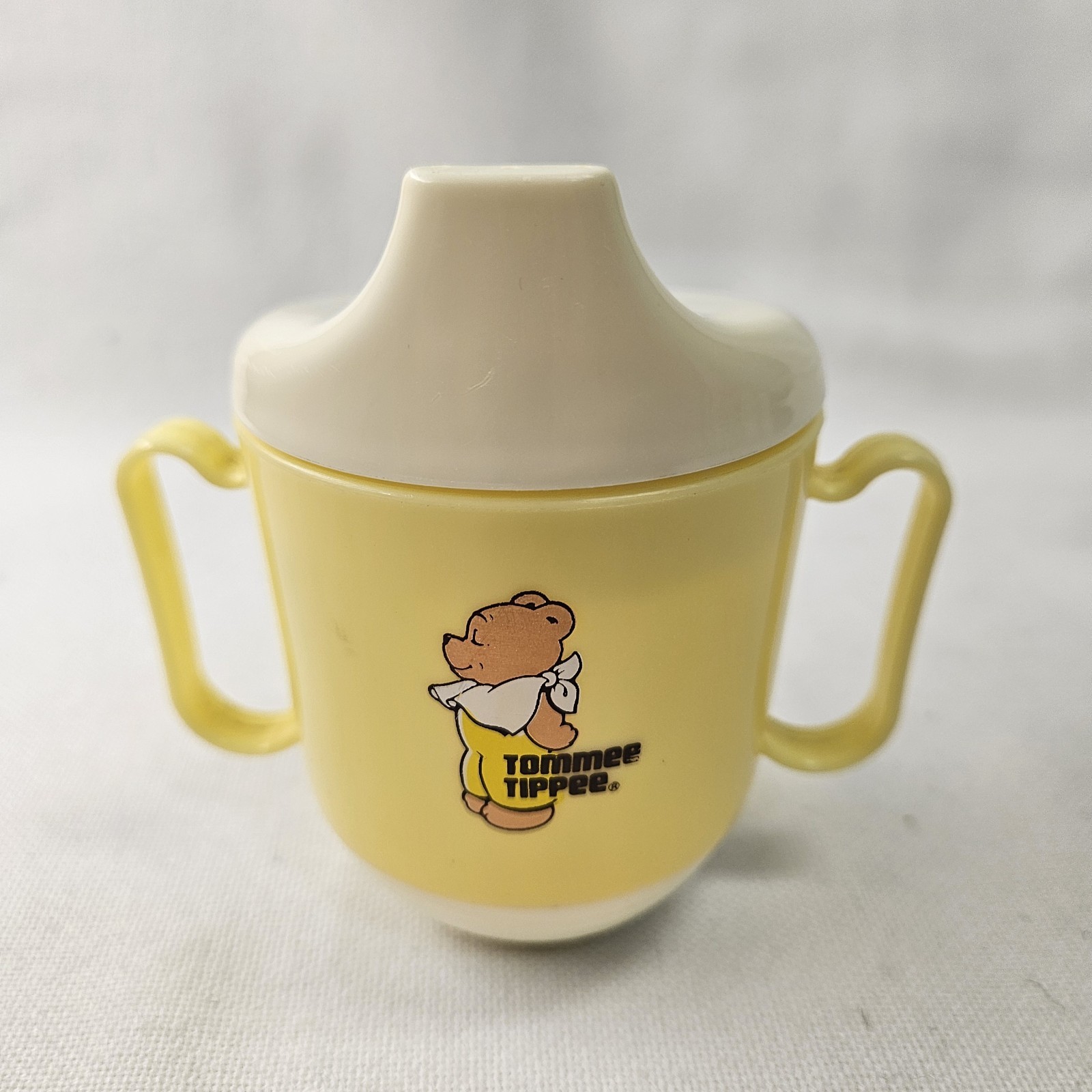 Vtg Tommee Tippee Yellow Sippy Cup Weighted Bottom Bear Childs Handles
