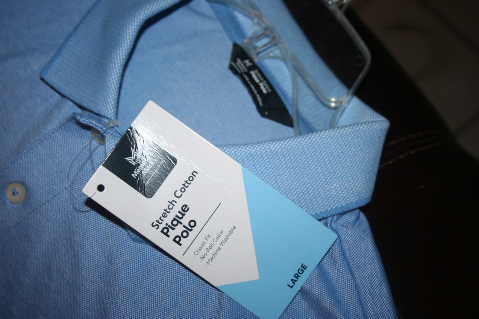 как выглядит Mens Medium Members Mark Stretch Cotton Pique Polo S/S Pullover Shirt-Blue-New фото