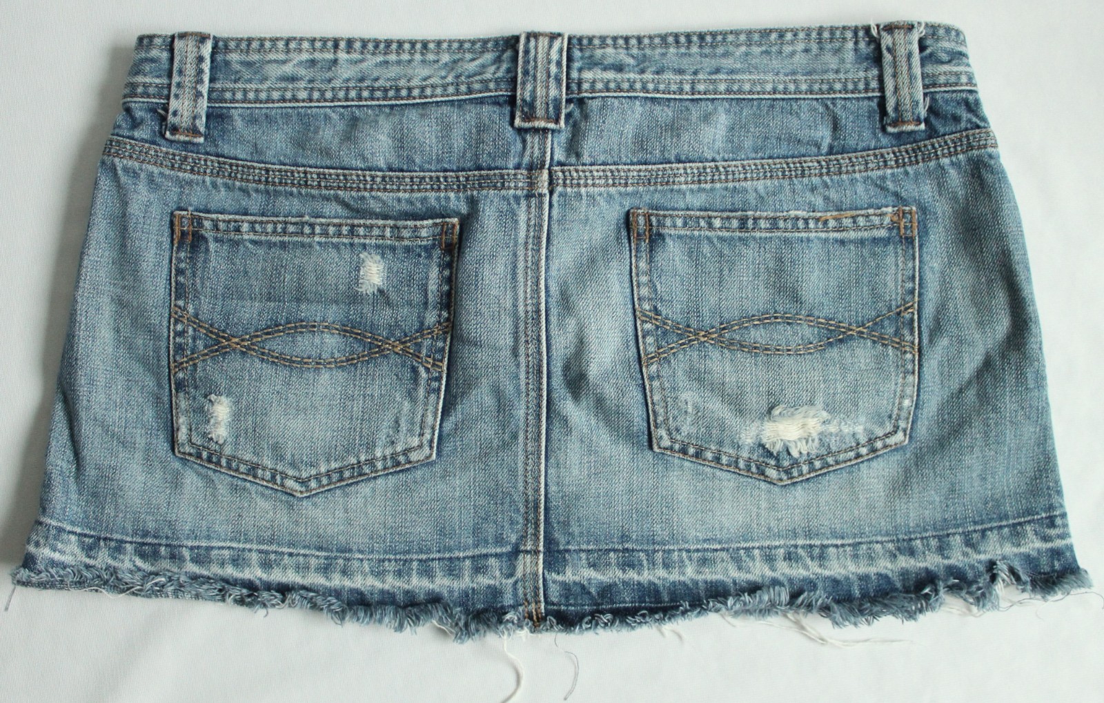 как выглядит Abercrombie and Fitch Womens 10 Y2K Vintage Micro Mini Denim Skirt Distress Fray фото