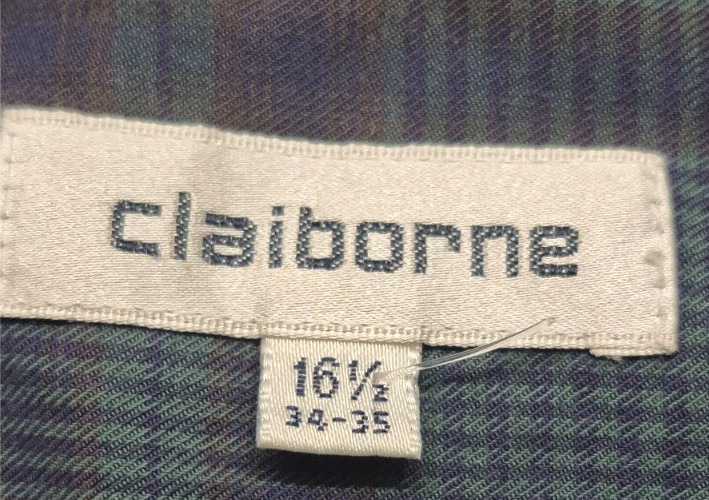 как выглядит VTG Claiborne mens blue/grn Plaid long sleeve button up shirt sz. 16.5 34-35 фото
