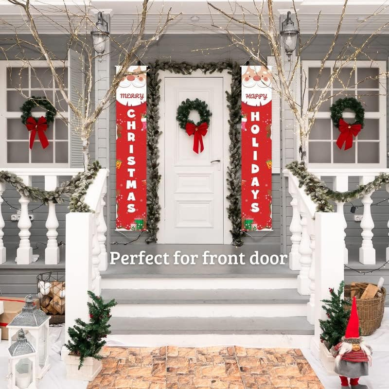 Outdoor Christmas Decor Front Porch Sign Set of 2, Christmas Decorations Door Ch