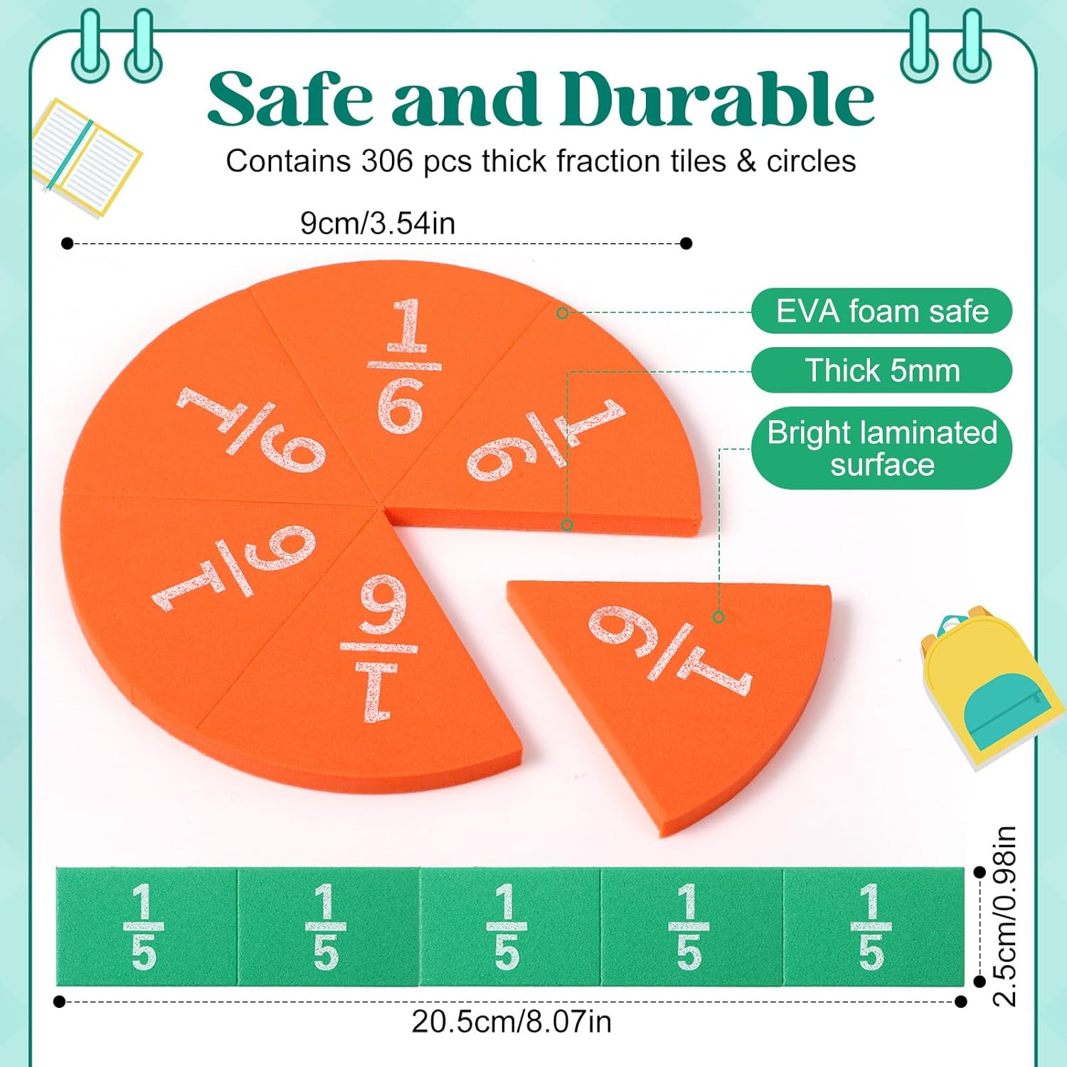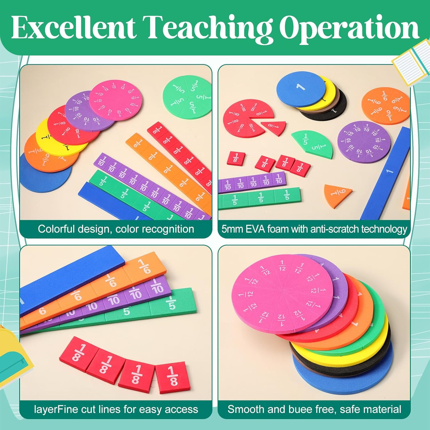 6 Sets Fraction Tiles Circles Set for Math Fractions Manipulatives Math Manipula