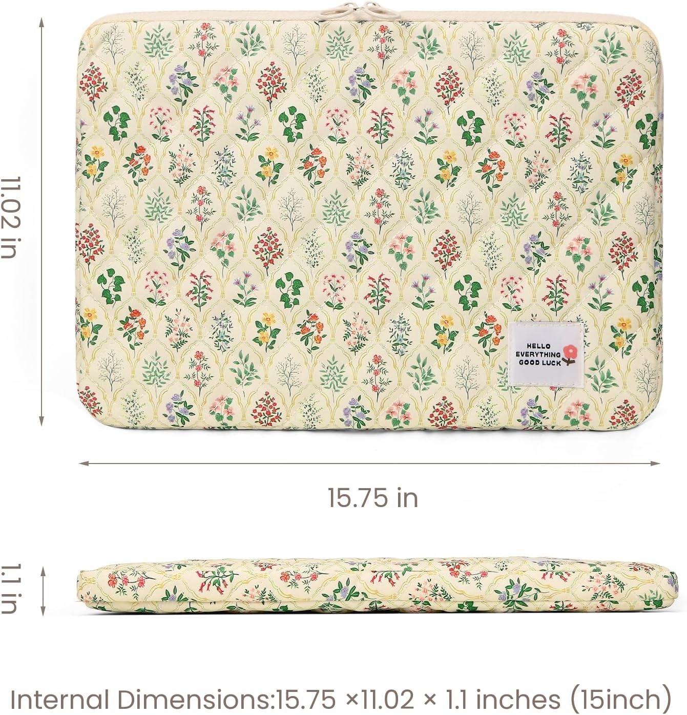 Puffy Laptop Sleeve Case Cute Computer Bag, 14 Inch Flower Printed Quilted Lapto