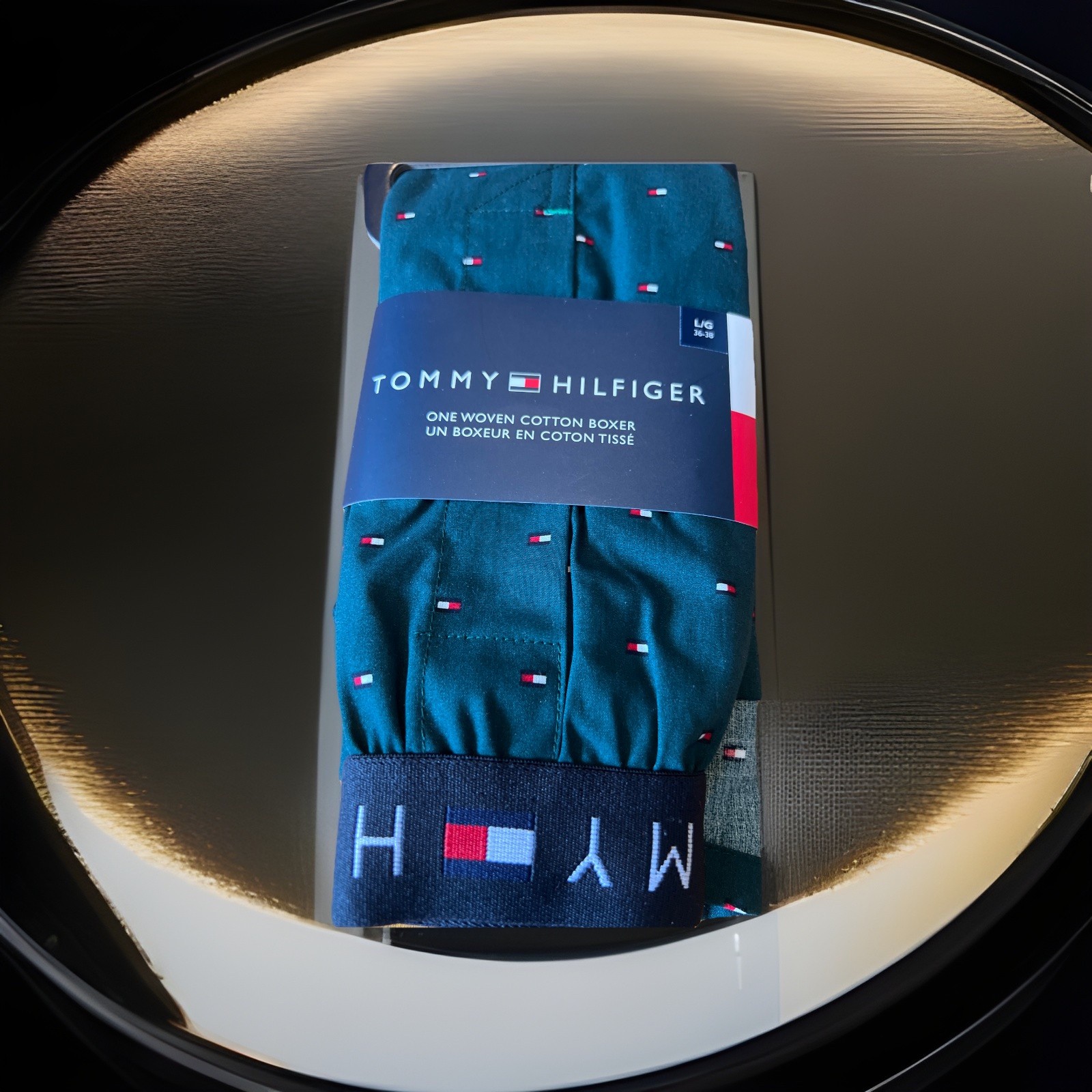 как выглядит Tommy Hilfiger Mens Woven Cotton Boxer Size LARGE FLAG PRINT фото