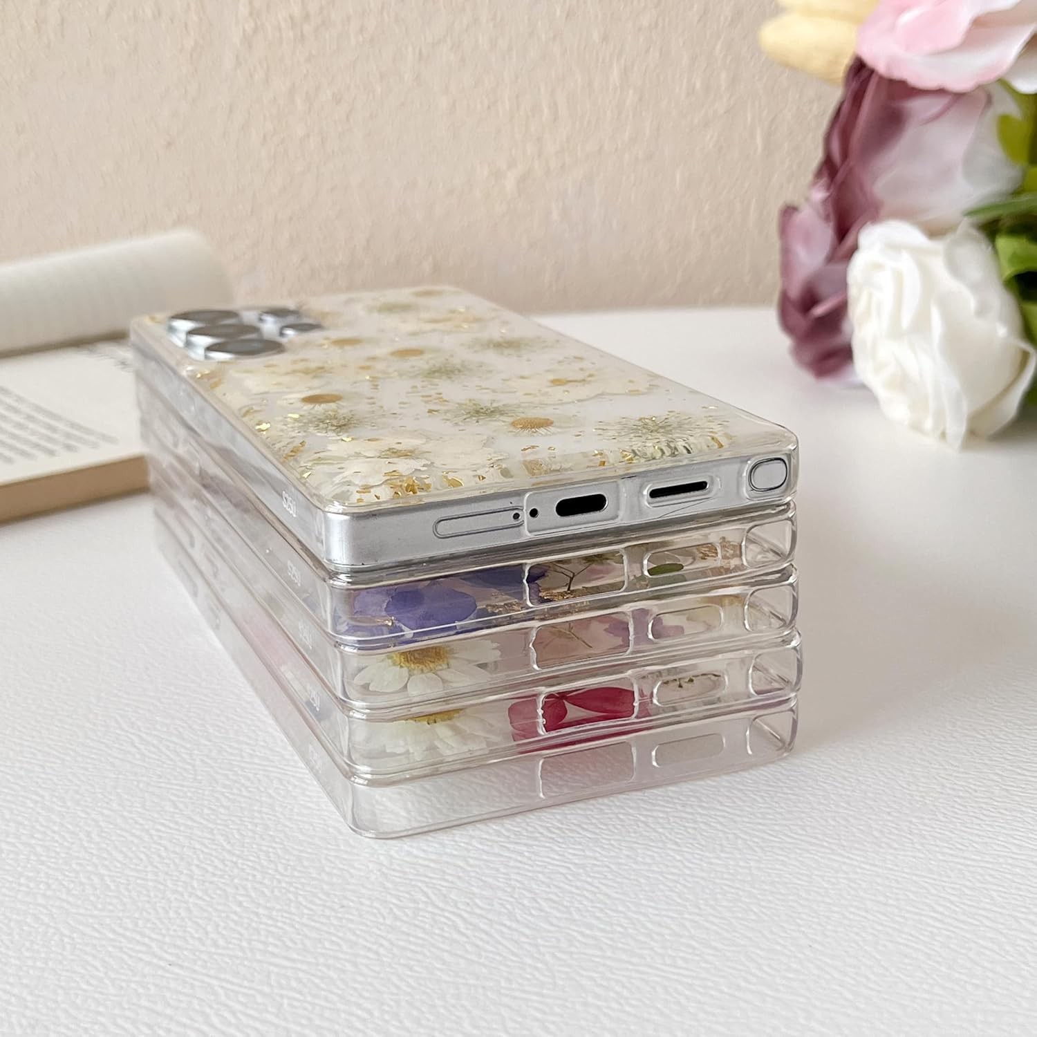 как выглядит Samsung Galaxy S25 Ultra Case Cute Floral Clear Daisy Pattern Aesthetic Dried Fl фото