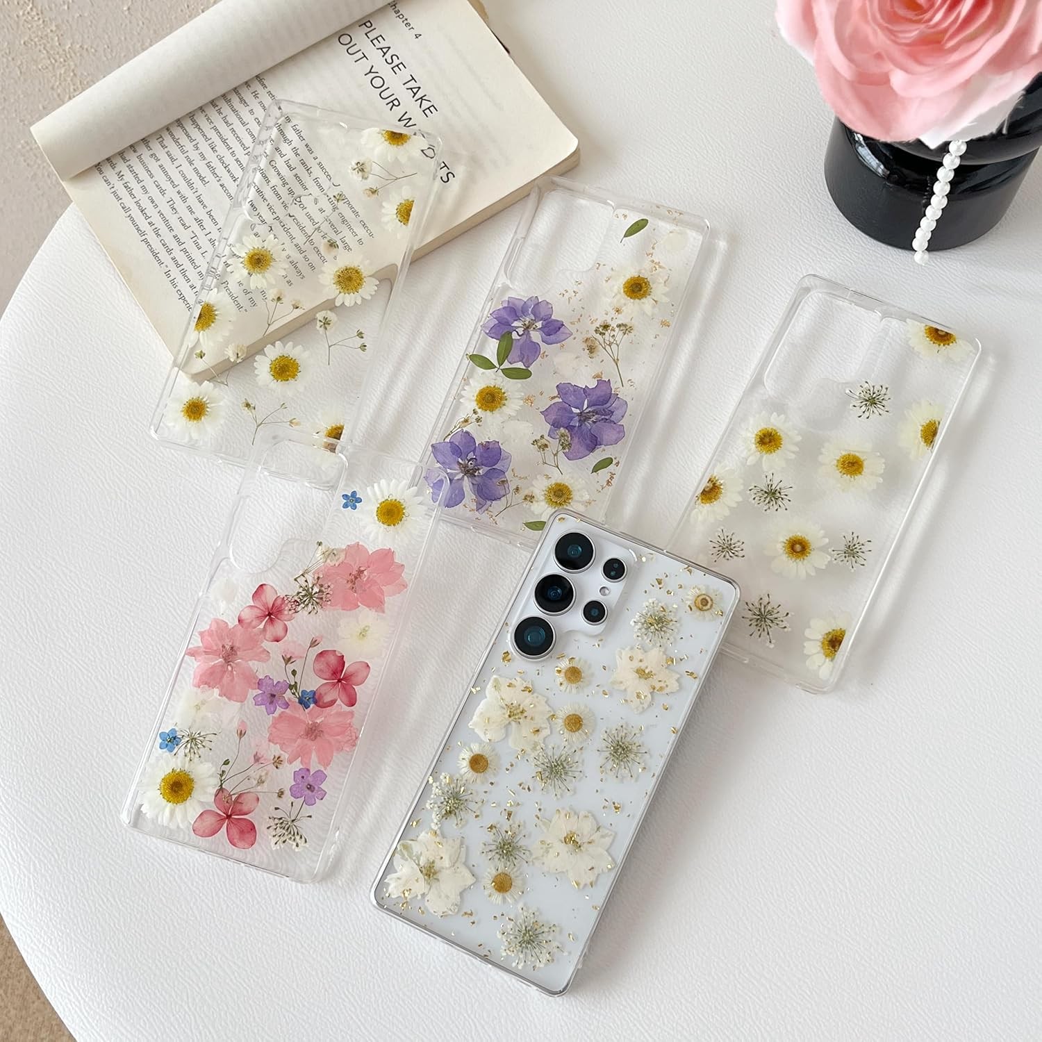 Samsung Galaxy S25 Ultra Case Cute Floral Clear Daisy Pattern Aesthetic Dried Fl