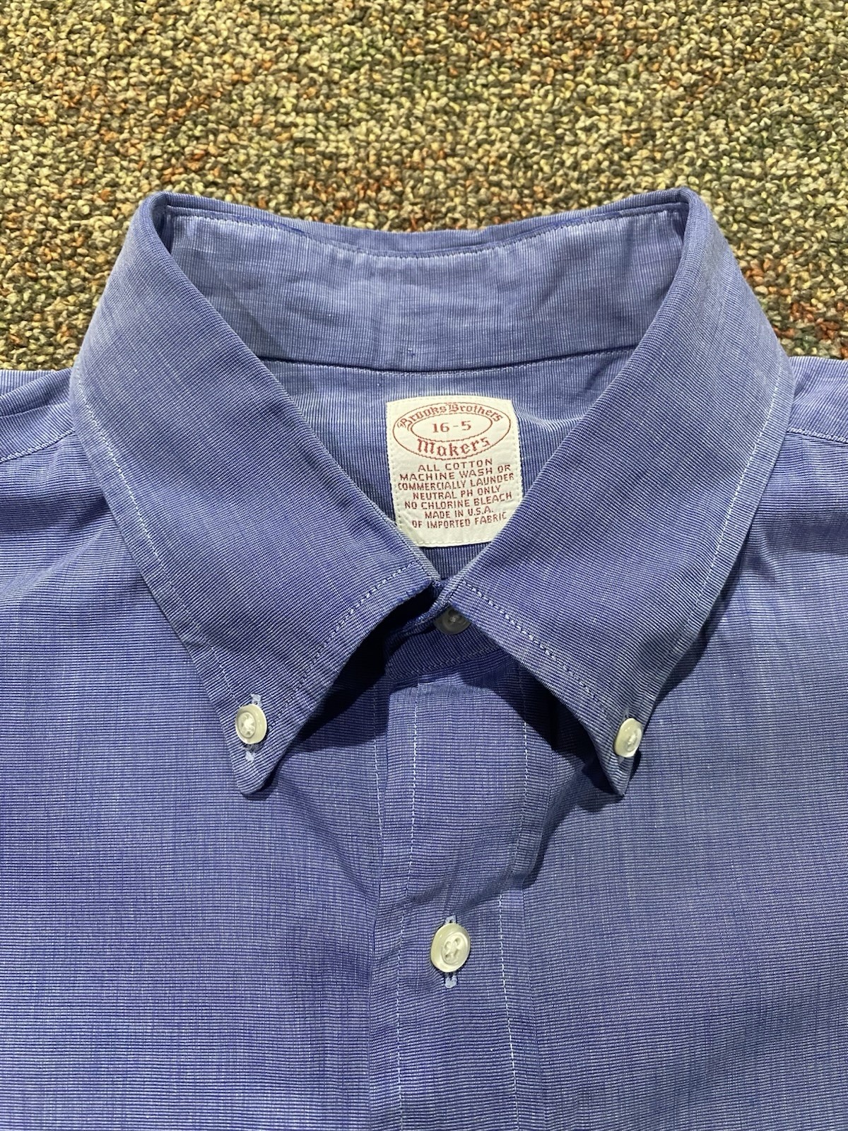 Brooks Brothers Makers Dress Shirt Mens 16 35 Blue Button Down USA Made Cotton