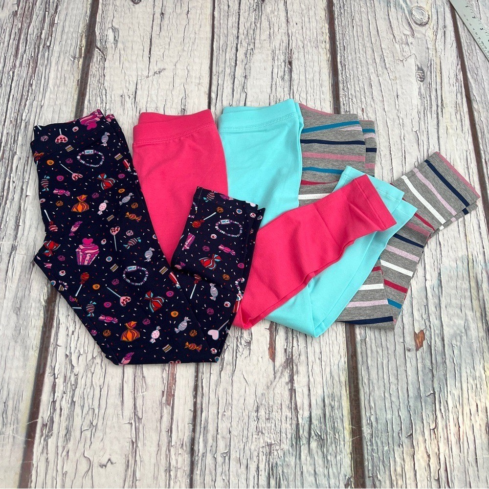 как выглядит Spotted Zebra 4pcs Girls and toddlers colorful leggings size XS 4-5 фото