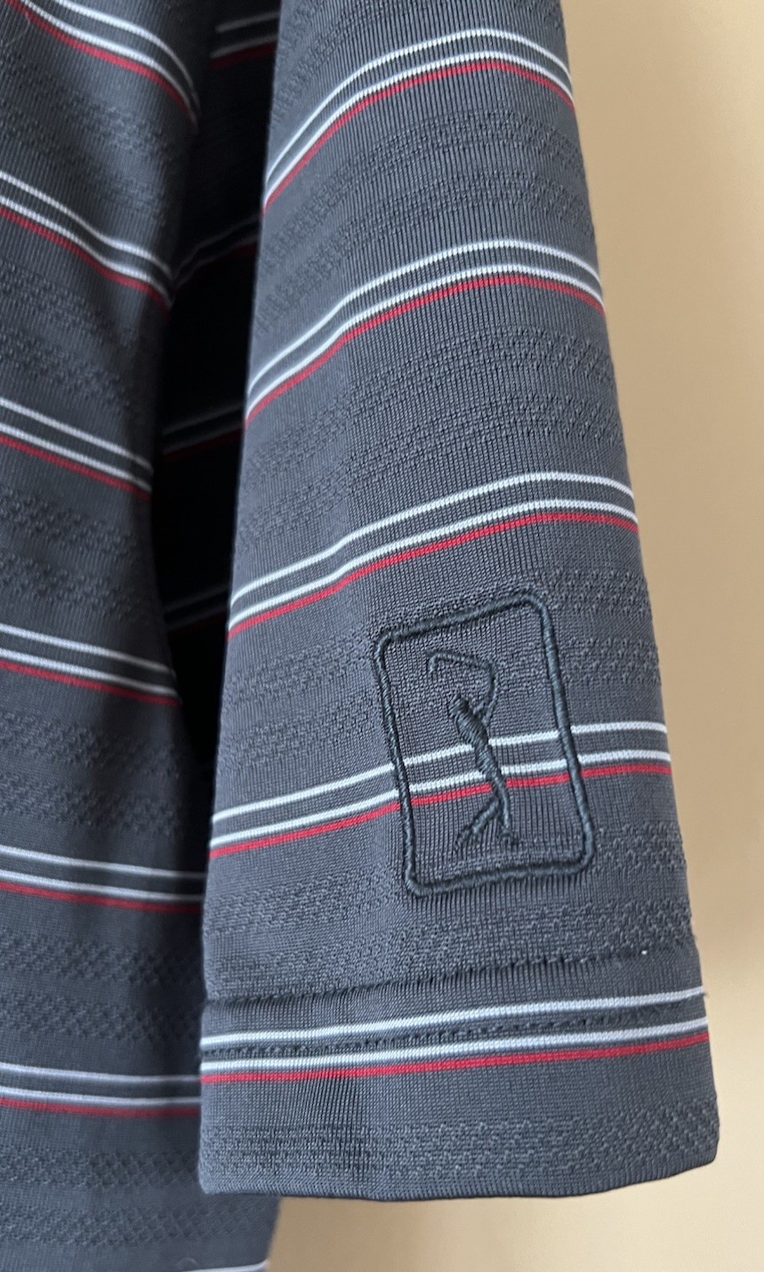 как выглядит PGA TOUR Polo Shirt Mens Gray Stripe Airflux Golf Short Sleeve Performance XL фото
