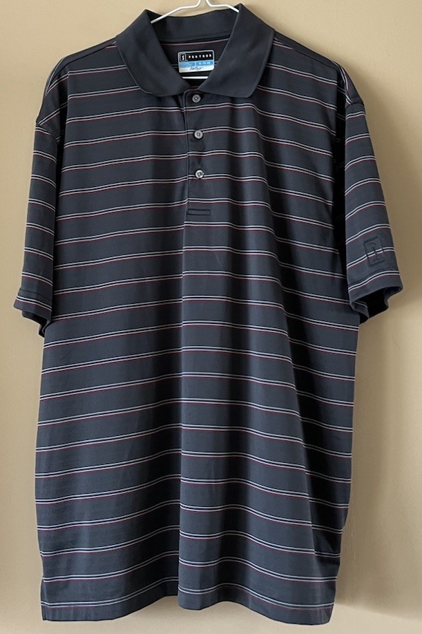 PGA TOUR Polo Shirt Mens Gray Stripe Airflux Golf Short Sleeve Performance XL