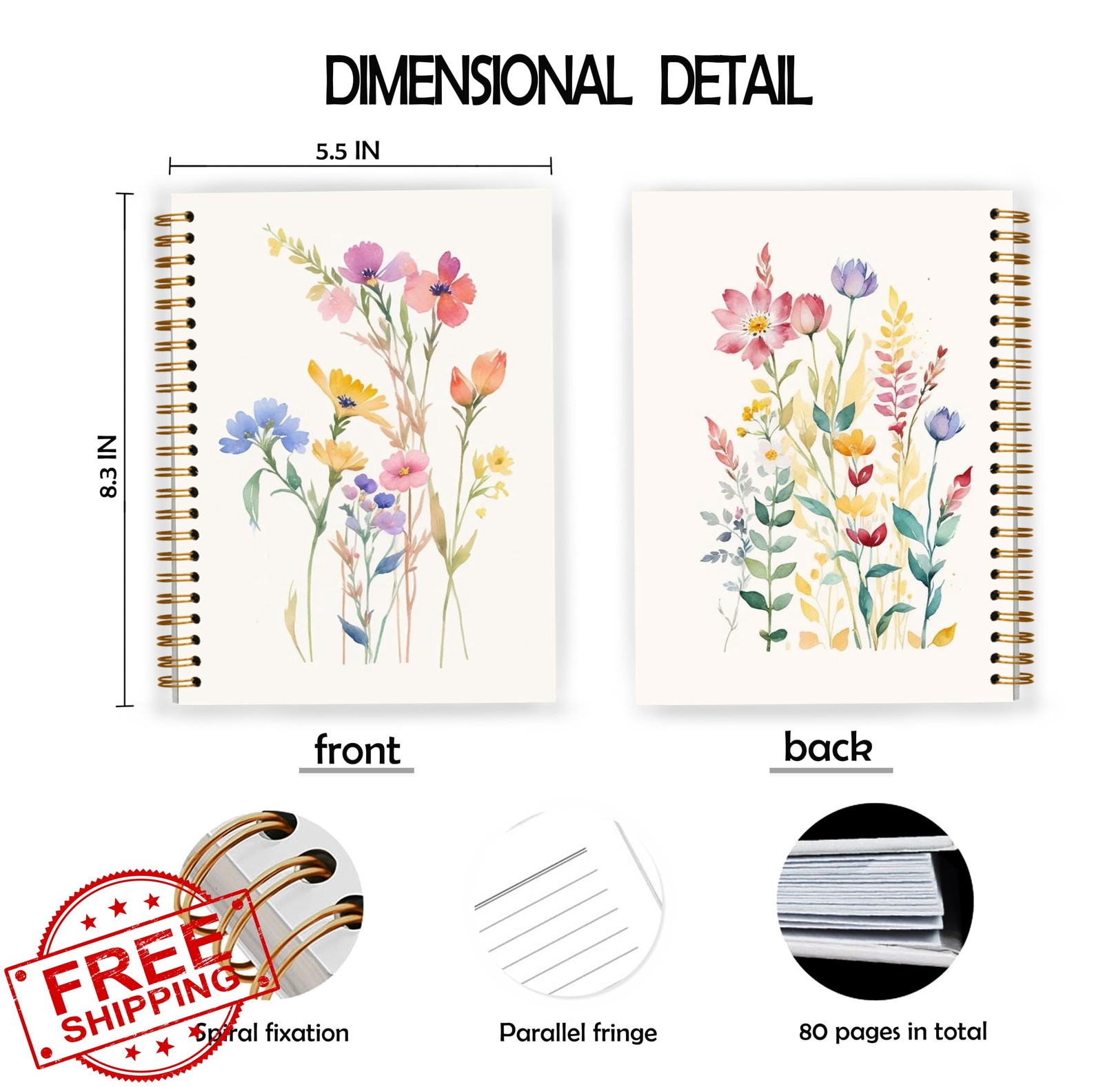 JWVK Wild Flower Botanical Notebook 06 Hardcover Spiral Floral Cottagecore