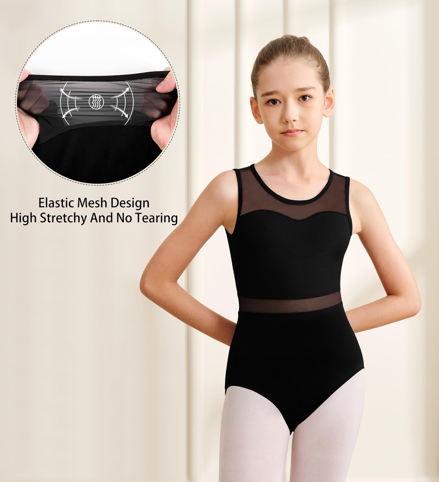 Girls Dance Leotard For Ballet Mesh Tank Dancewear,Mesh Splicing,Water Drop H...