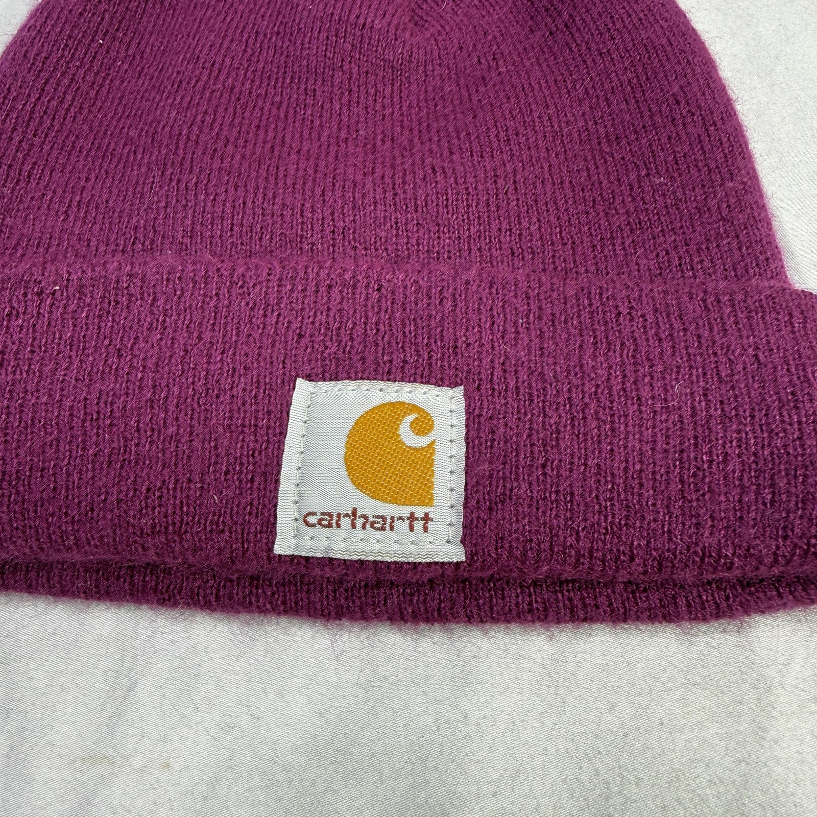 Carhartt Hat Beanie Fitted Youth One Size Purple Knit Cuffed Logo Winter USA