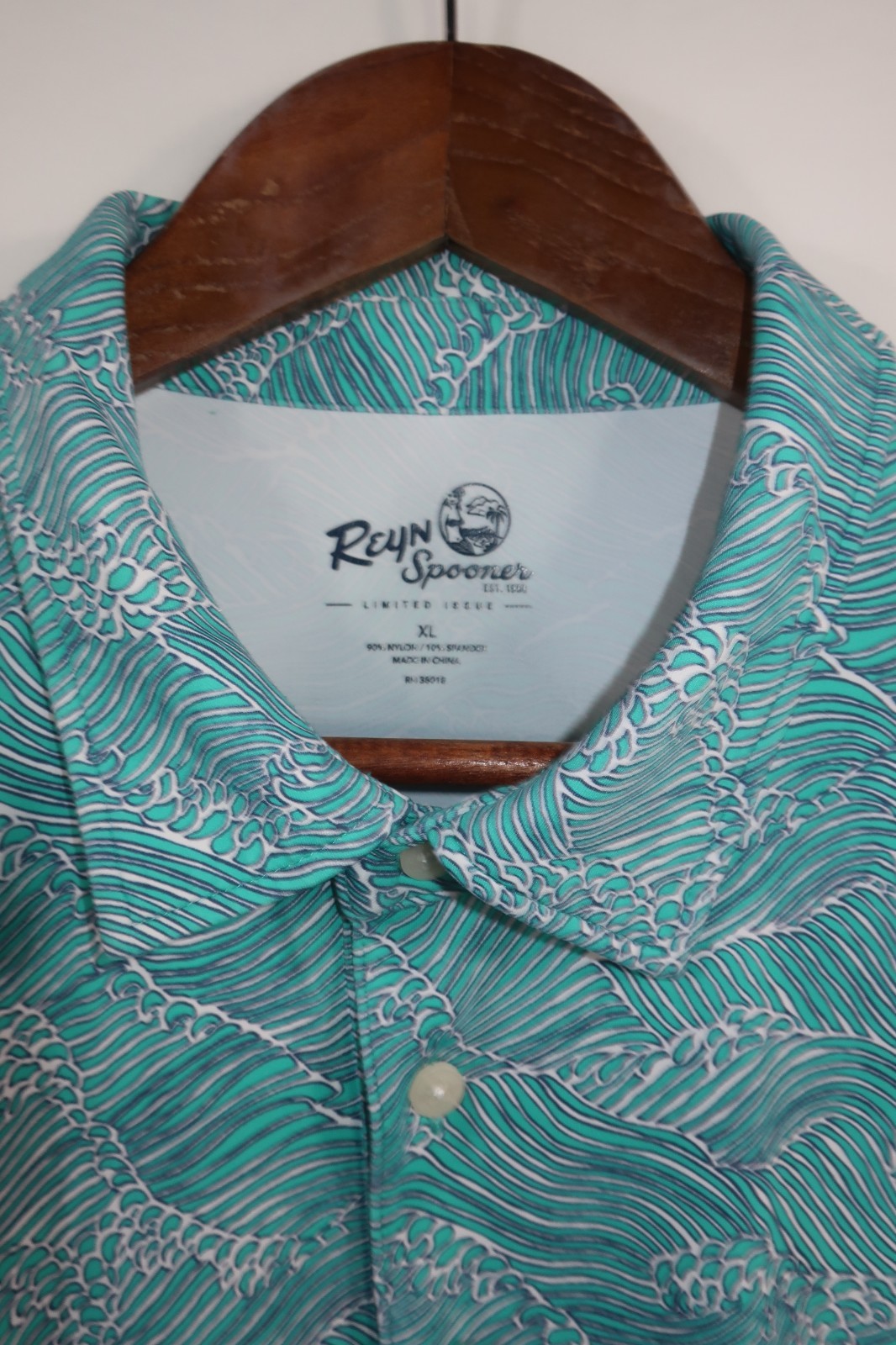 как выглядит Reyn Spooner Molokai Channel Polo Golf Shirt Size XL Aqua Blue Waves Performance фото