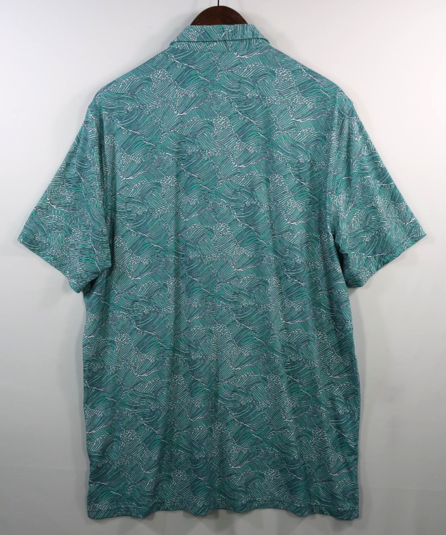 Reyn Spooner Molokai Channel Polo Golf Shirt Size XL Aqua Blue Waves Performance