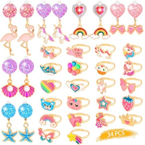 как выглядит Adjustable Kids Jewelry Set - Clip-On Earrings Dress-Up Accessories for Ages 3 фото