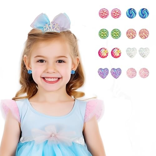 16 Pairs Kids Clip-On Earrings Set for Girls - Princess Dress Up Jewelry Gift Bo