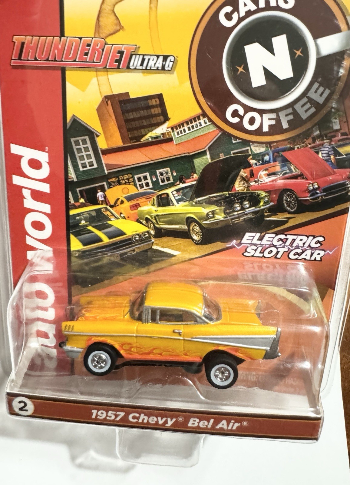 Auto World Thunderjet Cars N Coffee 1957 Chevy Bel Air Orange Flames HO Slot Car