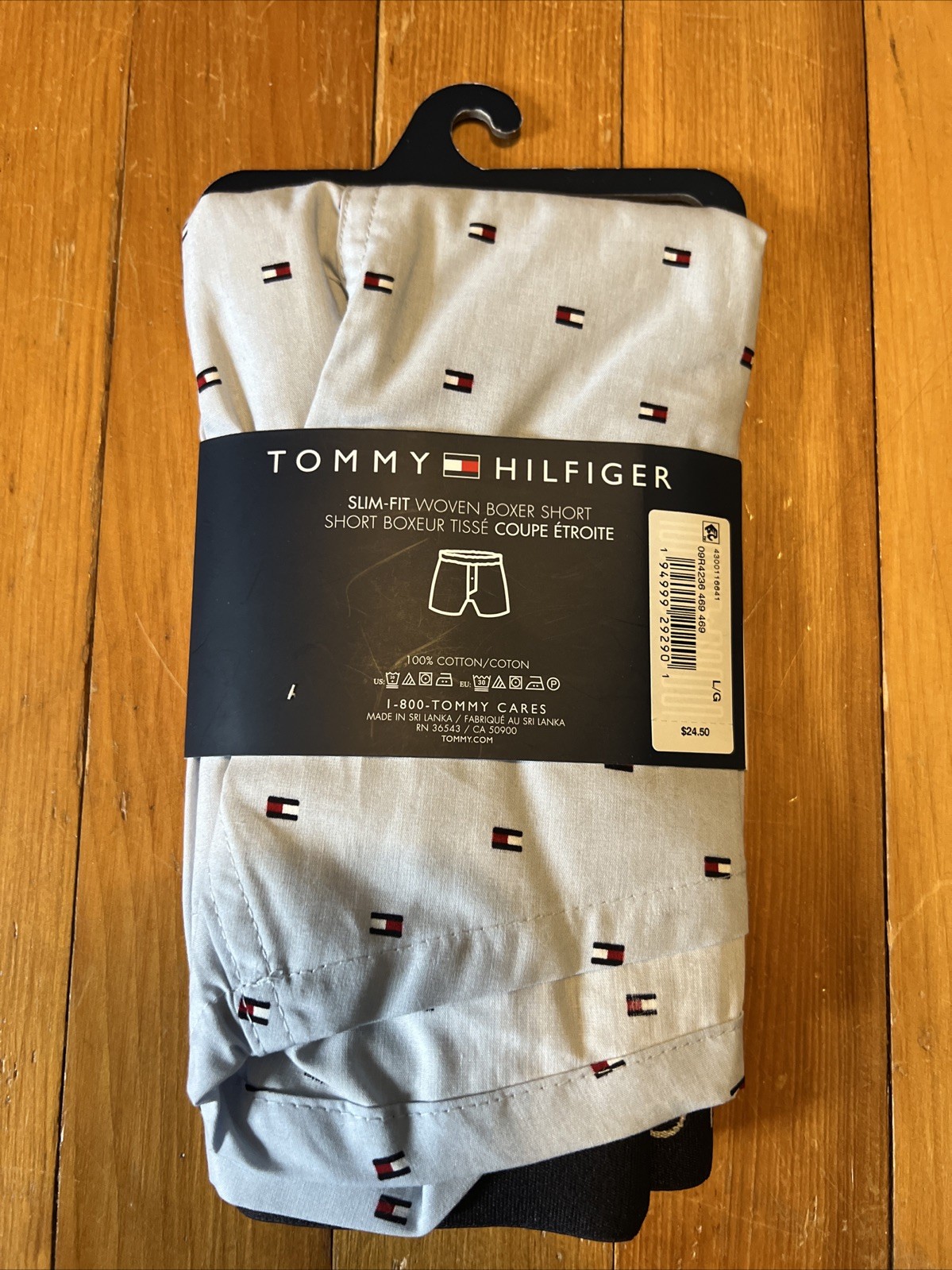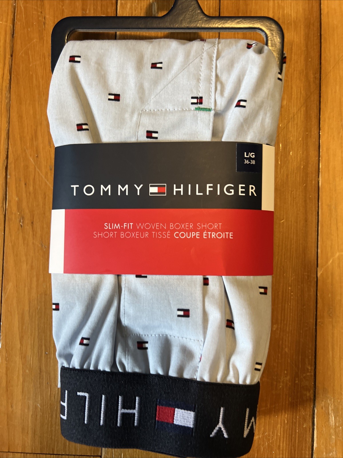 как выглядит Tommy Hilfiger Mens Woven Cotton Boxer Size LARGE Slim FIT FLAG PRINT фото