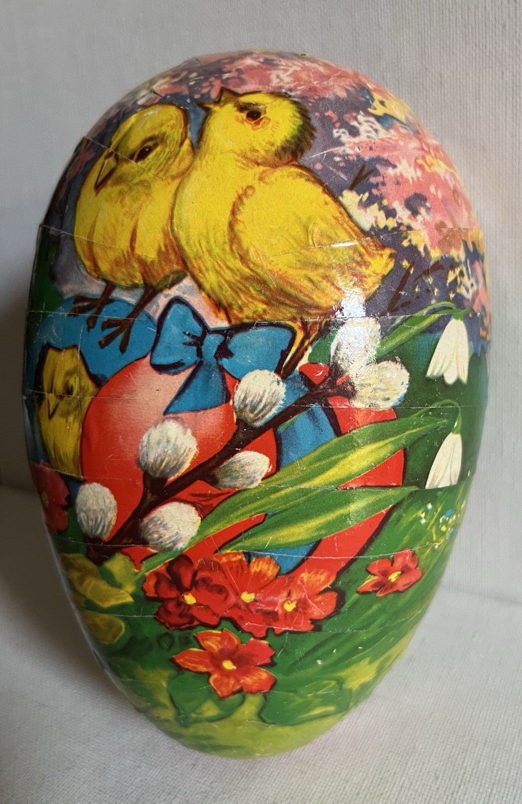 • Vintage Easter Egg Candy Container Paper Mache Chicks Pussy Willow West Germany