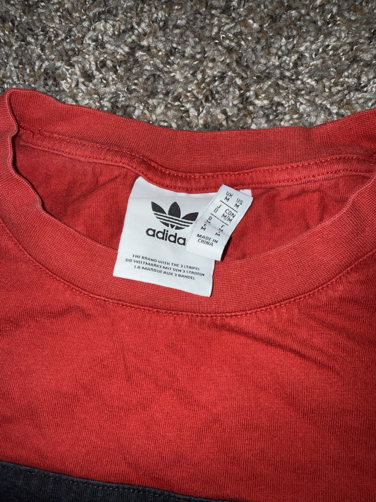 как выглядит Adidas Logo Graphic T Shirt Mens MEDIUM Black White RED Stripe Tee фото